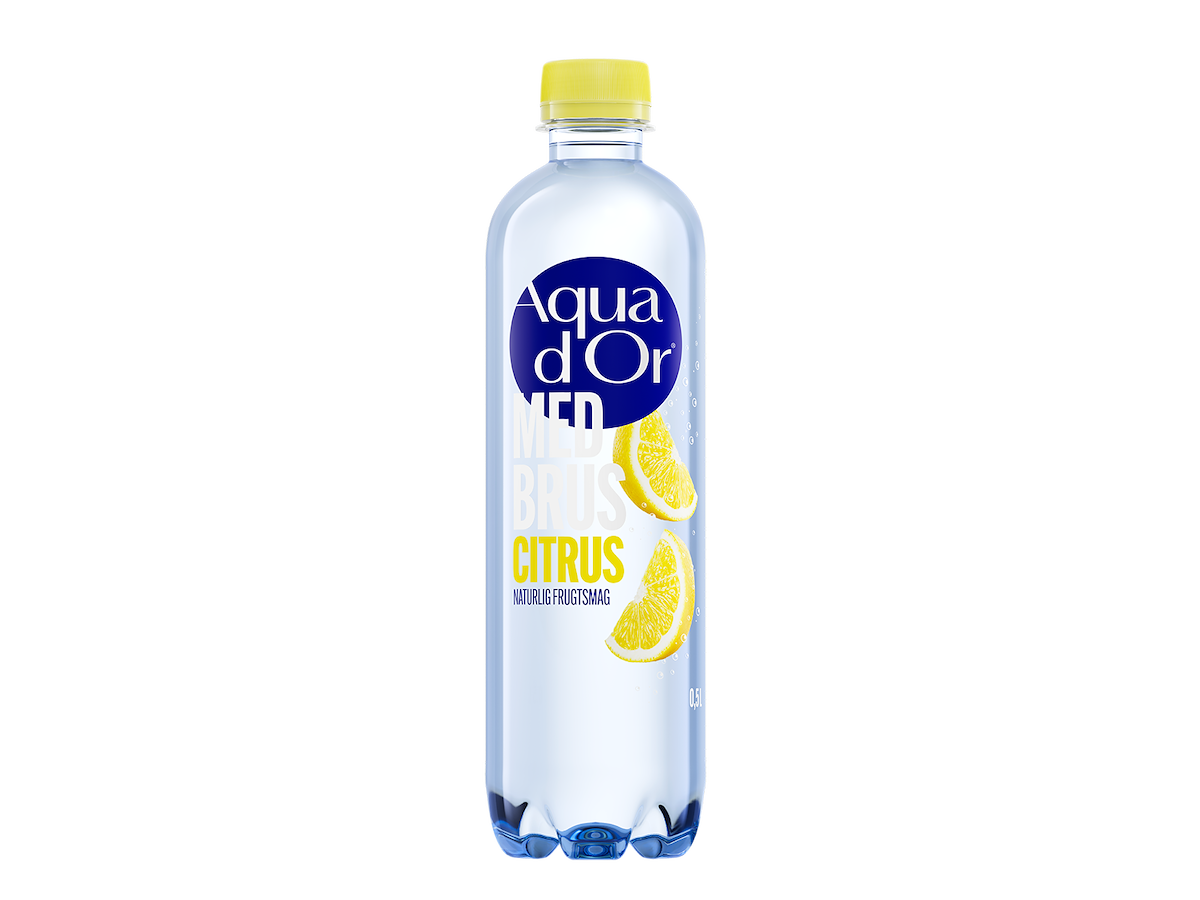 Aqua D'or blid brus 0,5 liter100 % naturligt mineralvand af højeste kvalitet fra AQUA D'OR kilden 160 meter under den jyske hede, kun tilsat blid brus. Boblende velvære. AQUA D’OR med blid brus citrus, er et naturligt og forfriskende indslag i hverdagen. Nyd den fx til middagen, alene eller som supplement til et glas vin. Blid brus citrus, er den perfekte ledsager både til det gode hverdagsmåltid og til gæstemiddagen, hvor den sætter prikken over i’et med sin rene smag og blidt brusende fornemmelse.