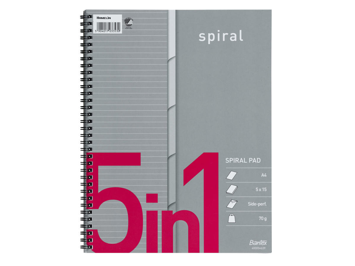 Smart index spiral blok med farvet index faner til forskellige emner. Blokken indeholder linjeret papir.