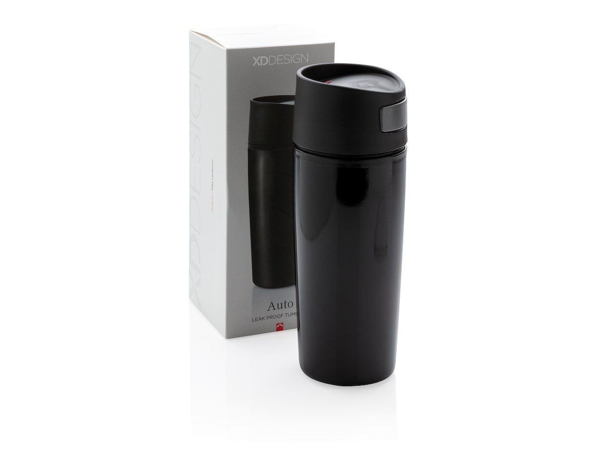 Auto er et 300ml krus med sort PP-belægning og et innovativ tryksystem, der gør det muligt for dig at betjene kruset med en hånd. Ideel til at bruge i bilen. Registreret design®