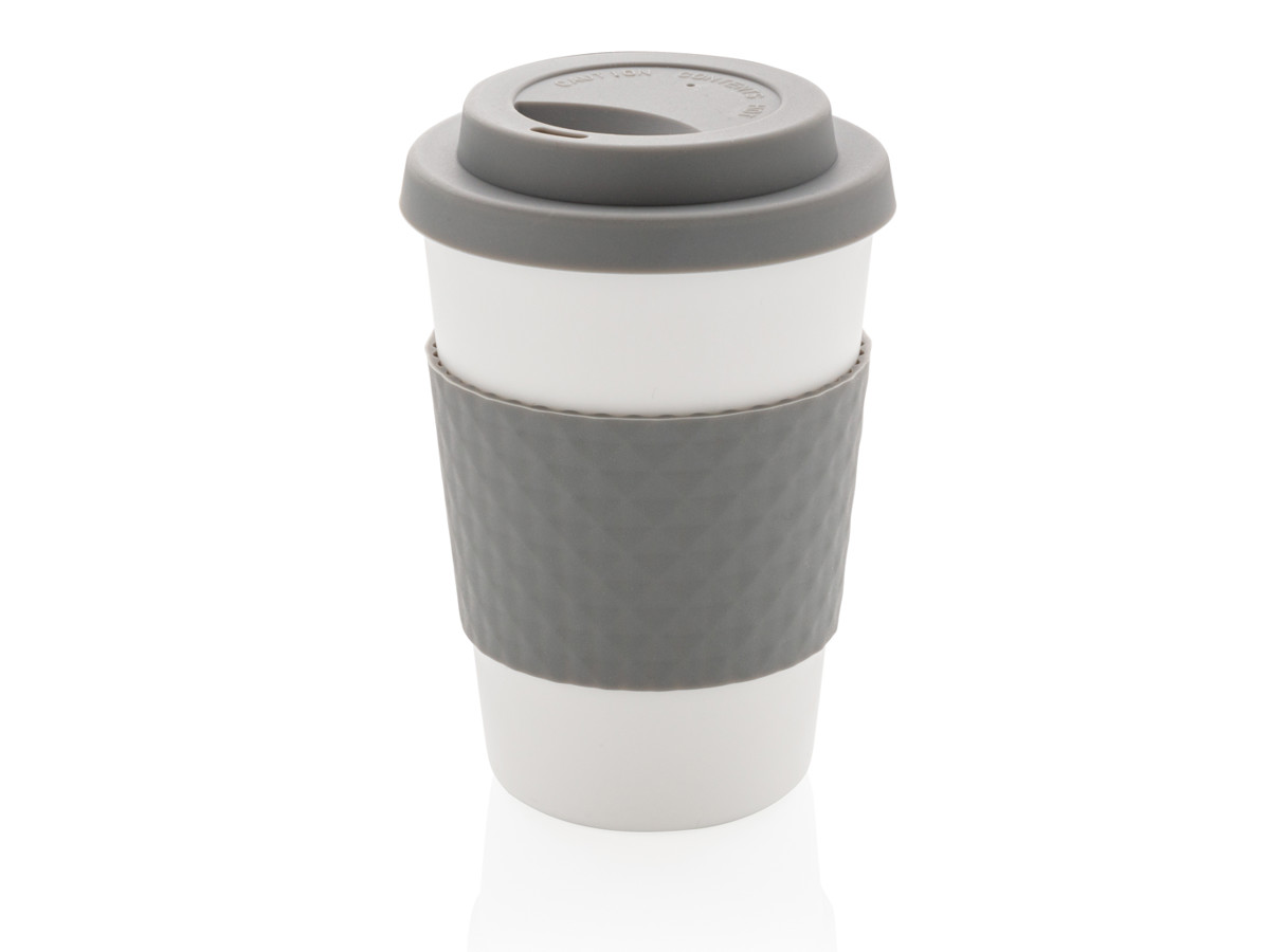 Stop engangsbrug! Medbring din egen kop og vær med på genbrugsrevolutionen så du samtidig bidrager til en verden uden engangsmateriale. Disse lette og holdbare kopper passer perfekt til "on the go". Kopperne er genbrugelige og lavet af 100% genanvendeligt PP materiale. Fødevaregodkendt og op til 100 grader. Med silikone låg og omslag. Tåler opvaskemaskine samt mikroovn. Passer til de fleste kaffemaskiner. Indhold: 270ml.