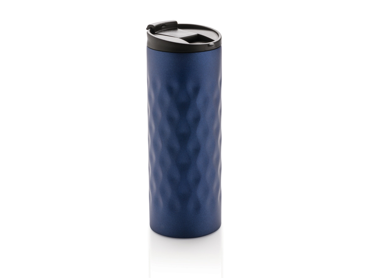 Dobbeltvægget krus i rustfrit stål. Med moderne geometrisk design. Kapacitet 350 ml.