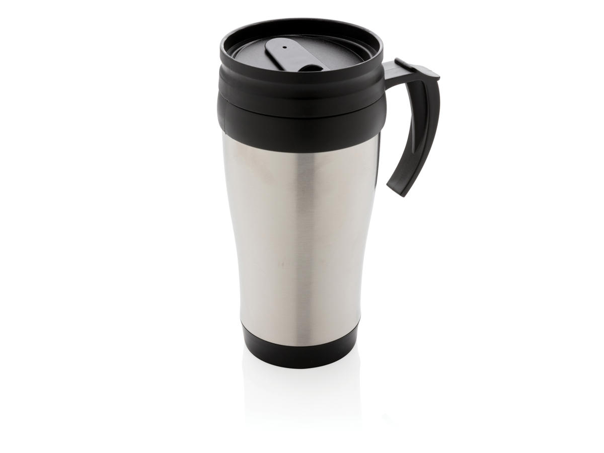 350ml krus i rustfrit stål på ydersiden og PP på indersiden med låg og bund i sort.