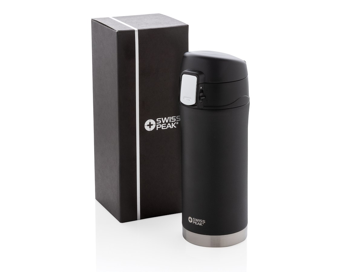 Swiss Peak elite serien er med dobbeltvægget vakuum isoleret type 18/8 rustfrit stål. Den sorte pulver coatede farve er super stærk for lang holdbarhed. Ingen misfarvning eller revner. Indervæggen er kobberbelagt for optimal varmeegenskaber og kan holde varmt i op til 8 timer og koldt i op til 24 timer. Kun til håndvask. Indhold 300ml.