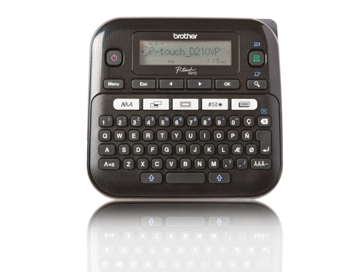 Bordmodel til kontoret - PT-D210VP er en kompakt labelprinter, der er hurtig og meget brugervenlig. Du kan skabe dekorative labels med varierende mønstre ved hjælp af de indbyggede skabeloner og det letlæselige grafiske display.