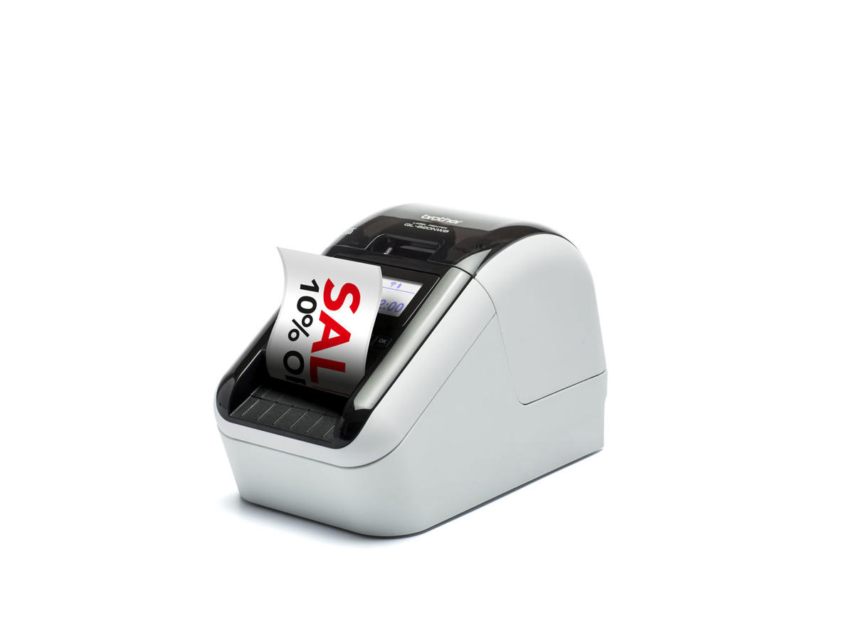 Du kan bruge specielle ruller, så du kan printe labels med sort og rød skrift uden brug af blæk eller toner. Og med specielt designede labels op til en meter, med indbygget kniv eller endeløs bane, kan man virkelig se, hvorfor dette er en meget avanceret labelprinter.