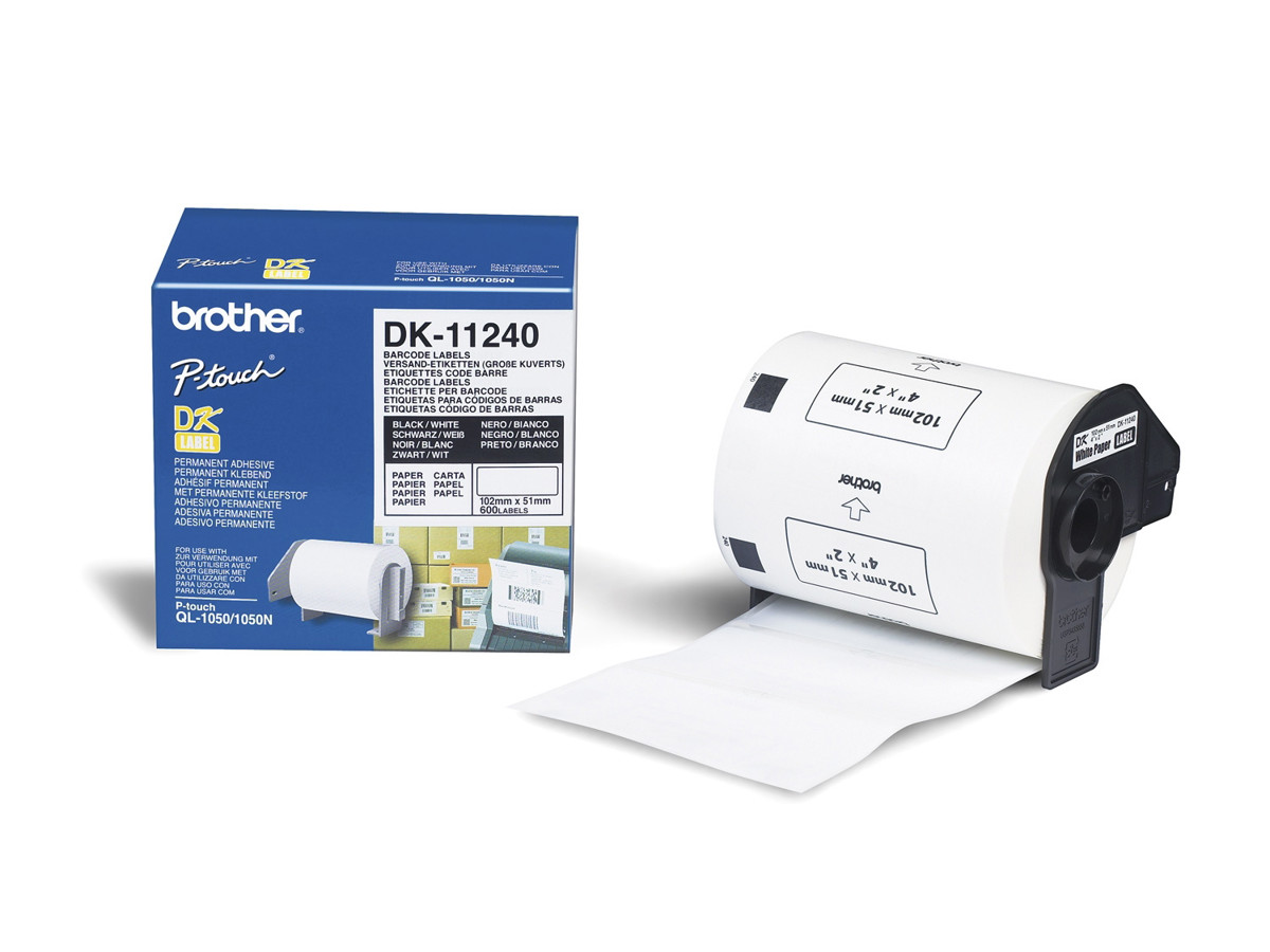 Brother DK11240 stregkode etiketter er en uundværlig løsning til jeres virksomheds behov for mærkning og identifikation. Hver etiket er udstanset til en størrelse på 102x51 mm, perfekt til at bære en stregkode til produktidentifikation, prissætning eller lagerstyring.
