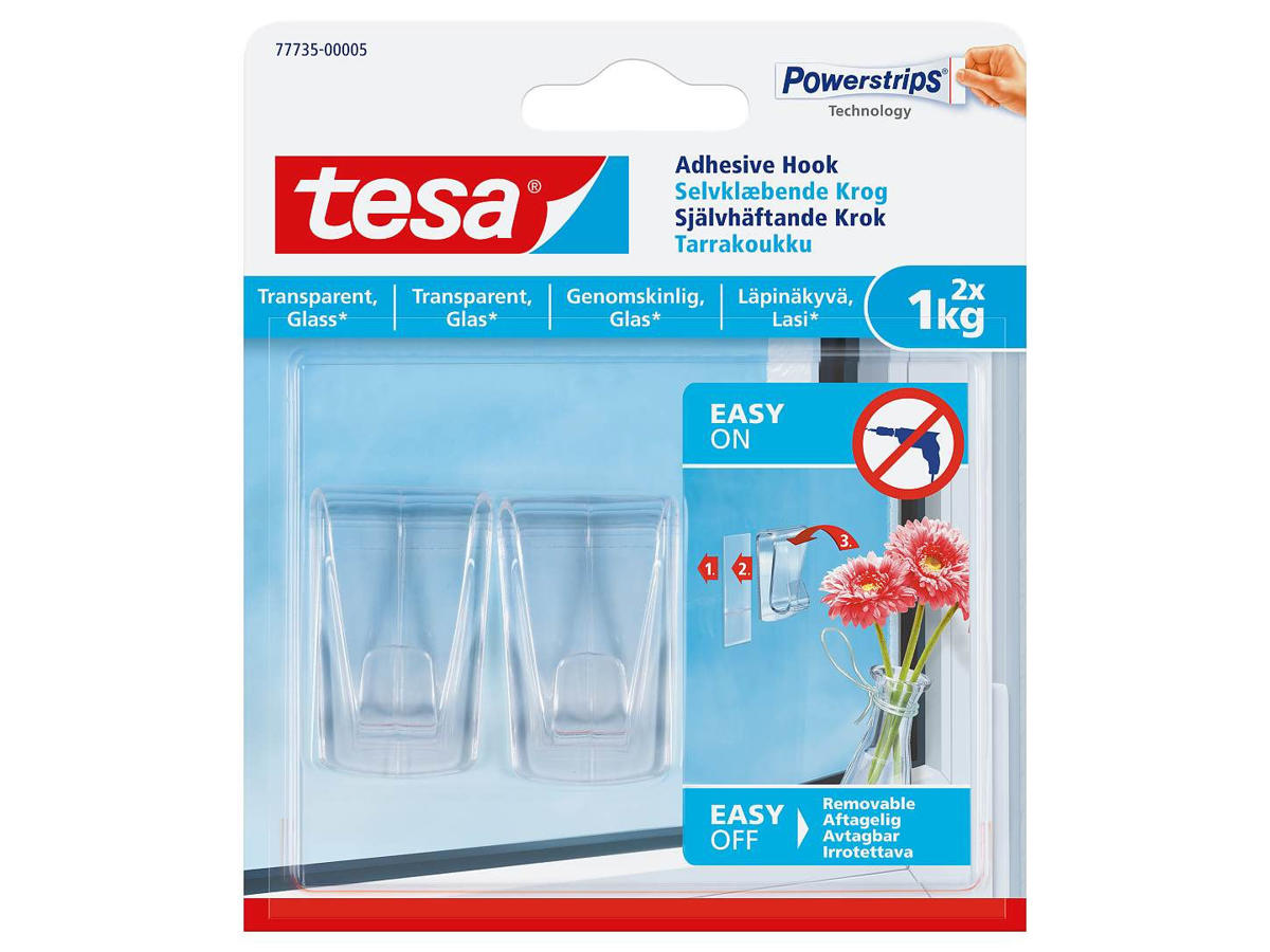 Tesa klæbekrog til glas med Powerstrips-teknologi er en ideel løsning for dem, der søger en pålidelig og skånsom løsning til ophængning på glas og andre transparente, faste overflader.