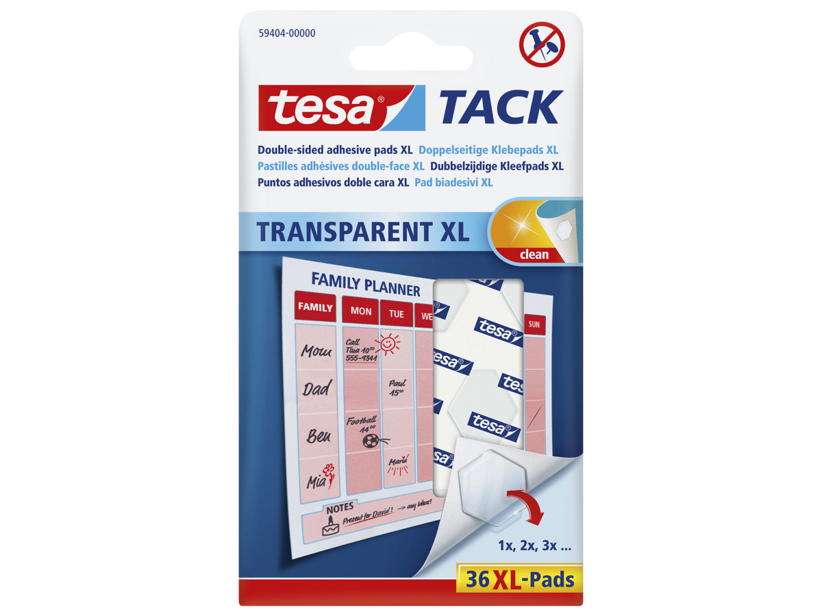 Midlertidig fastgørelse af lette, men større genstande f. eks. kalendere og plakater- Tusindvis af anvendelsesmuligheder- Til de fleste overflader- Dobbeltklæbende- Fleksibel - kan flyttes- Gode klæbeegenskaber- Usynlig (transparent og flad)- Efterlader ingen fedtpletter- Dimension: (3 cm²)
