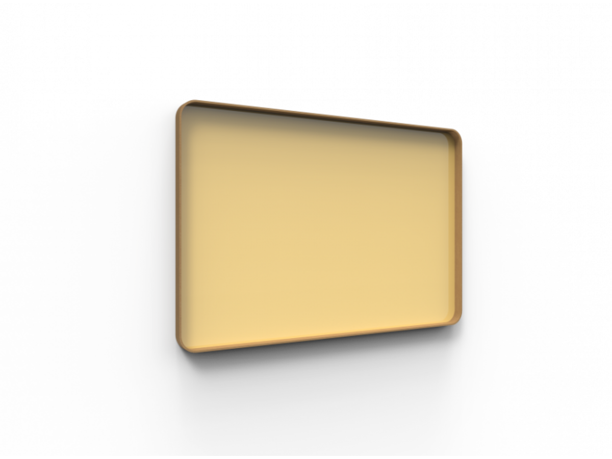 Lintex magnetisk glastavle med bløde afrundede hjørner og en massiv egetræsramme, der indrammer hele tavlen samt fungerer som pennehylde.