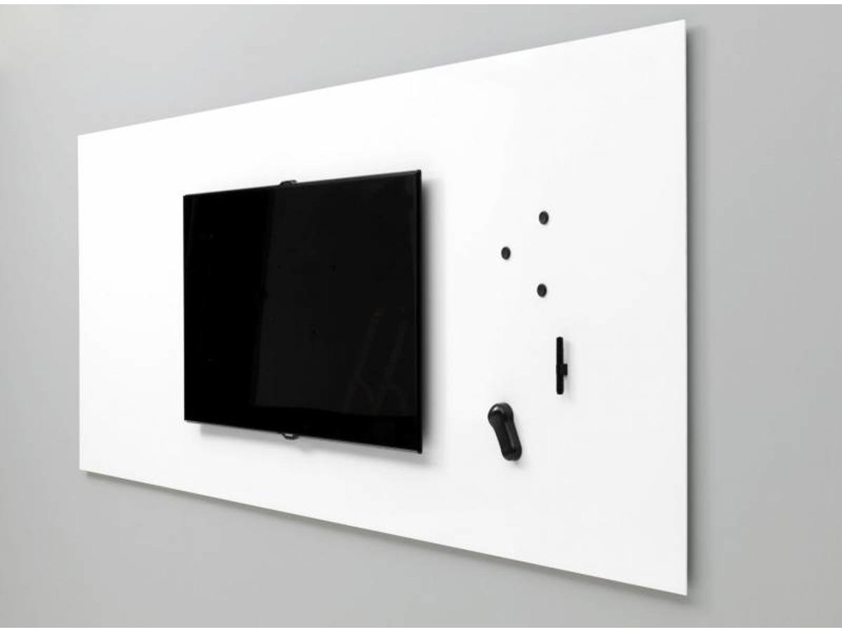 Whiteboard fra Lintex med stålkeramisk magnetisk overflade, der er forberedt til montering af TV.