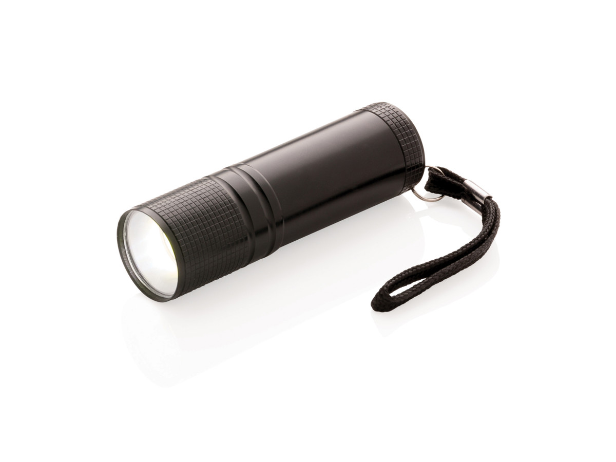 Super kraftig COB lygte i lommestørrelse. Denne COB lygte er meget kraftigere end en LED lygte men bruger mindre energi og lyser op til 30% længere på samme batteri. Med stærkt aluminiums hus og bærestrop. Inklusive 3xAAA batterier så den kan anvendes med det samme.