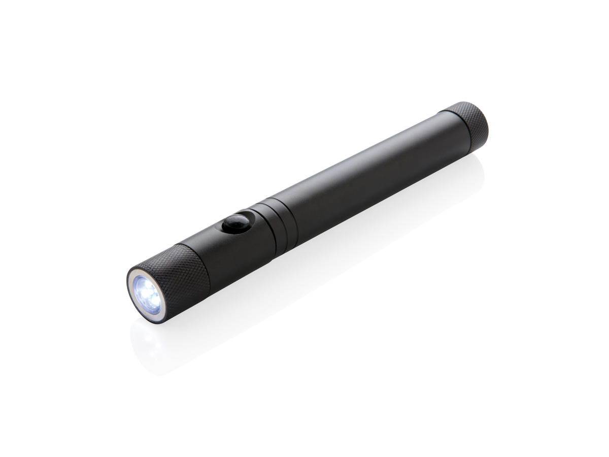 Denne LED arbejdslygte, der er det perfekte værktøj til ethvert behov, dobbelt magnetisk så den er perfekt egnet til fastgørelse på alle metaloverflader for optimal belysning. Denne aluminium-lommelygte giver dig mulighed for at trække den ud fra den normale størrelse på 17 cm til 58 cm, så du kan samle ting op, der befinder sig steder, hvor det er svært at se og komme til, med magneten foran. Denne lommelygte er udstyret med tre LED dioder for ekstra kraftig belysning på mørke steder. Når lygten trækkes ud, bliver hovedet fleksibelt og kan justeres i alle retninger. Inkl. batterier til umiddelbar brug.