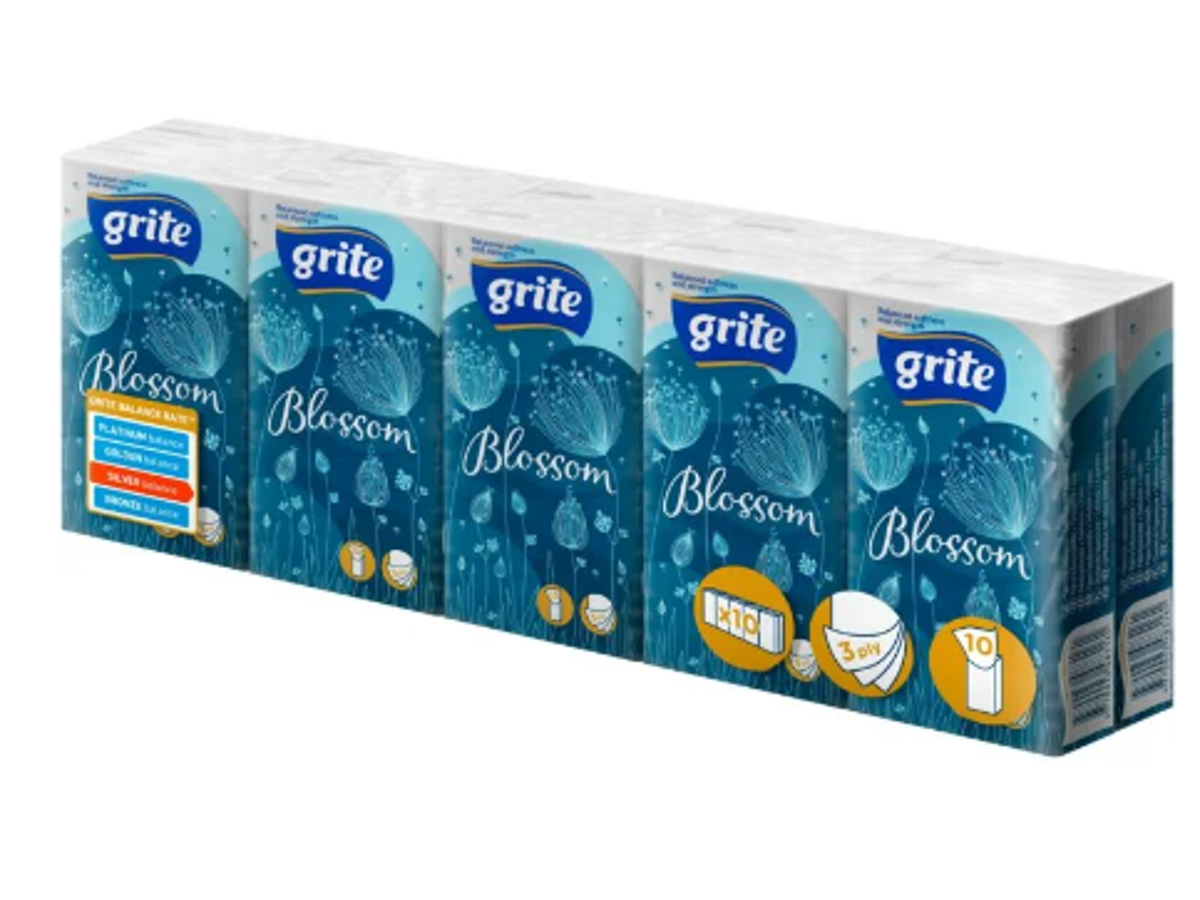 Ekstra bløde lommetørklæder til lommen og tasken. Leveres som 10 pakker i god 3-lags kvalitet fra Grite