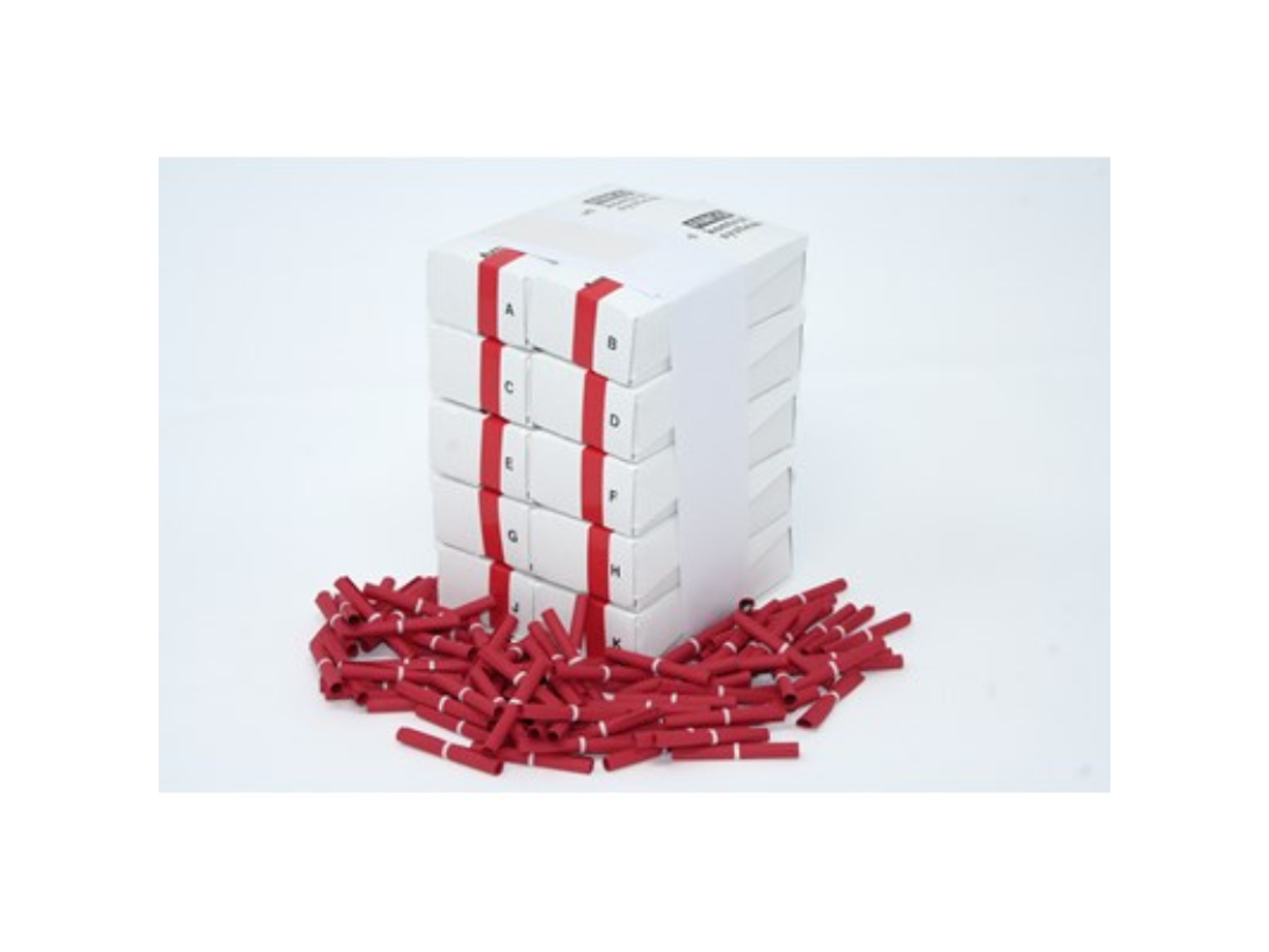Løber fra 1-100 med et bogstav i hver æske. Lotterisedlerne måler 40x40mm.