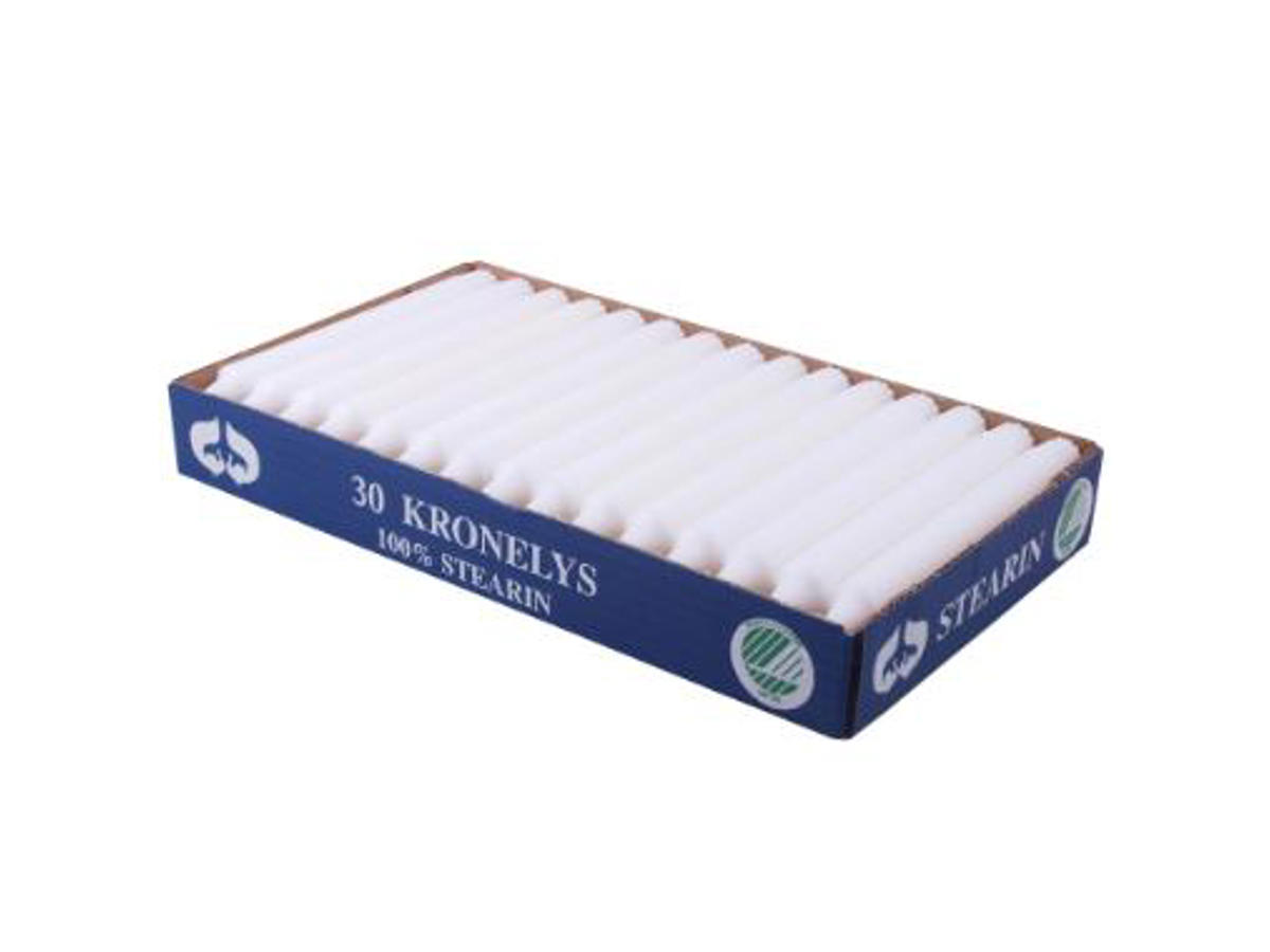 Kronelys ø23 x 200 mm brændetid 7 timer hvid 5x30 stk