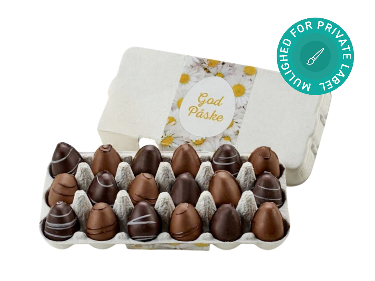 På dette påskeprodukt er det muligt at få dit eget logo trykt på, så du kan levere en personlig og unik påskegave til dine medarbejdere, kunder og samarbejdspartnere. Vær opmærksom på, at Hertels Boresko skal have modtaget både bestilling og trykfil med dit logo inden d. 16/3 2026 for at kunne levere bestillingen inden påske.