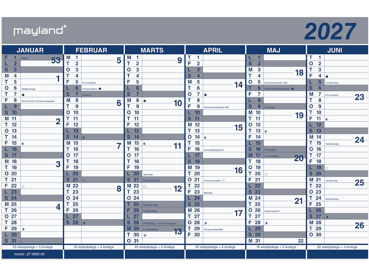 Smart og fleksibel dobbelthalvårskalender som består af to selvstændige halvårskalendere, en for januar-juni og en for juli-december. De to kalendere gælder tilsammen for hele året og kan hægtes sammen og kan evt. hægtes sammen med flere år, for et bedre og større overblik. 3 stk. ophængskroge medfølger.