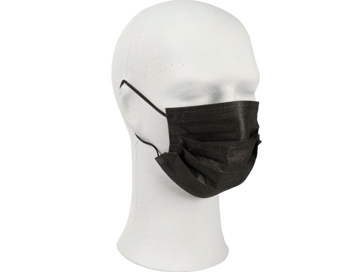 Sort mundbind med bløde og stærke øreelastikker og næseklemme, der sikrer god pasform.