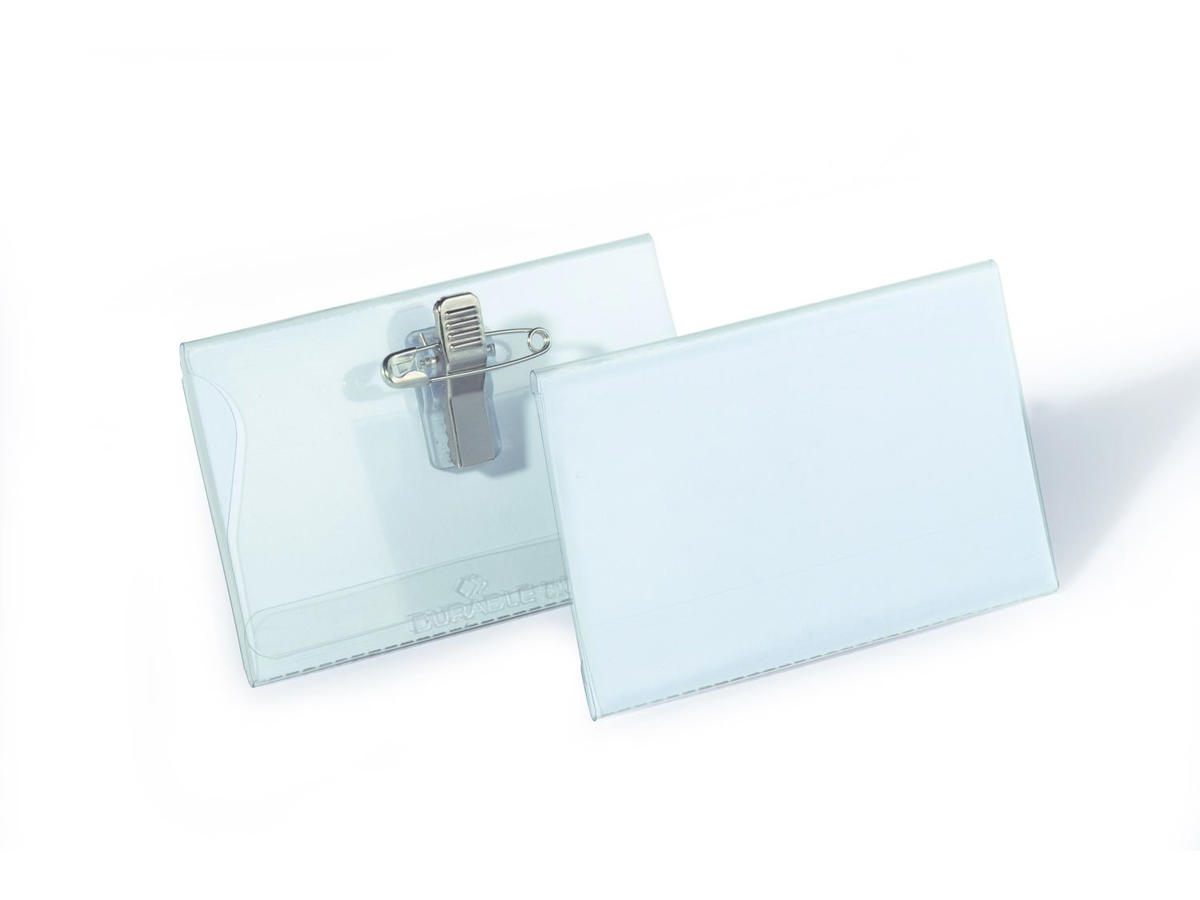 Navneskilt med kombiklemme 54x90mm (HxB). Kombineret sikkerhedsnål/klemme giver valgmulighed for at fastsætte på tøjet. Med tommelgreb som gør det enkelt at udskifte indstiksetiketten. Indstik medfølger. Mål indstik: 54x90m (HxB). Indstiksetiket på A4 ark til udskrivning i printer kan bestilles separat