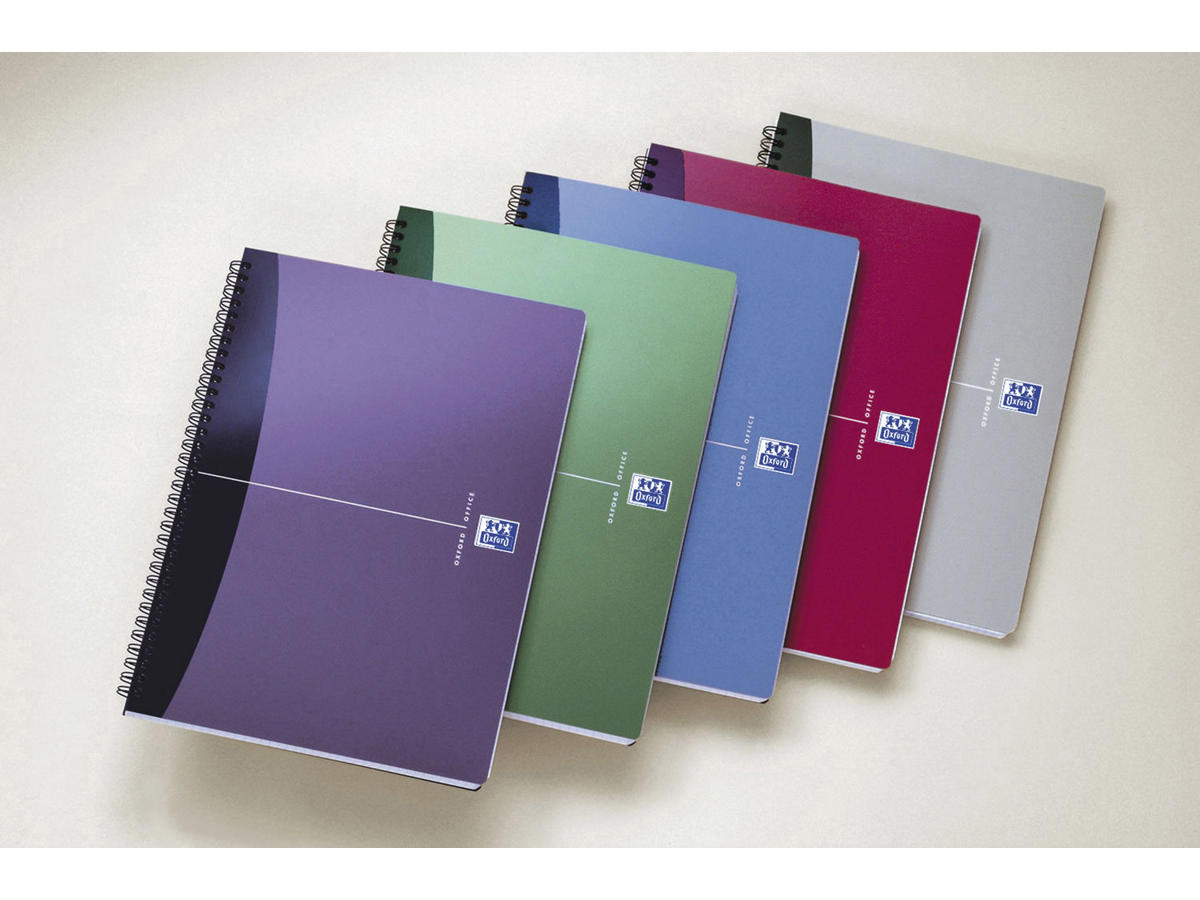 Praktisk spiralryg og omslag i let, slidstærk og smudsafvisende polypro i elegante metalfarver.