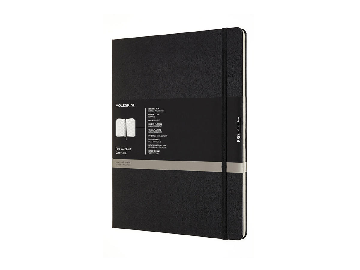 Den klassiske sorte PRO-notesbog (21.59x27.94 cm) fra Moleskine er FSC-certificeret og praktisk designet med målet at optimere din arbejdsdag.