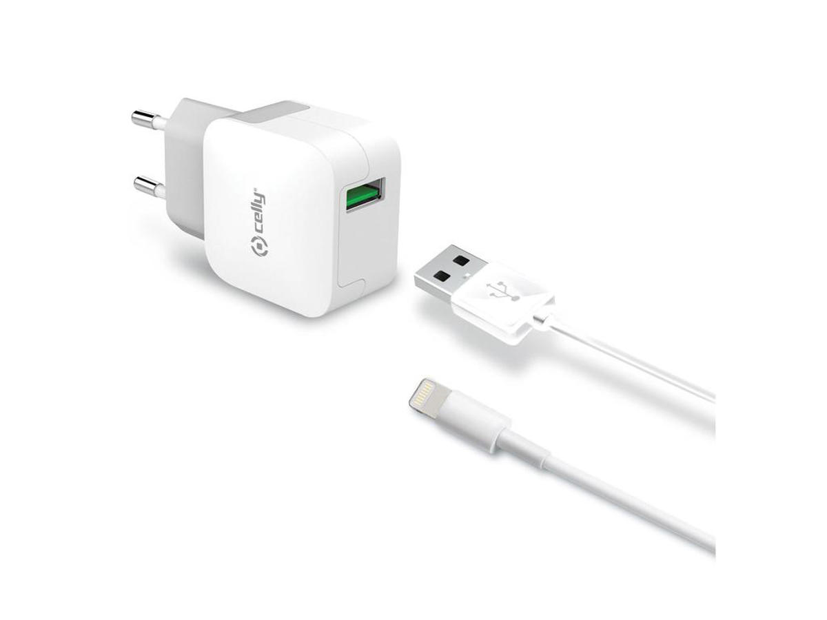 Mobil rejseoplader med USB-port. Den maksimale strømudgang på 2,4 Ampere/12 Watt, oplader din smartphone og tablet hurtigere end en konventionel oplader. USB-kabel med Lightning-stik, til opladning og synkronisering af smartphones (MFI-certificeret "Made for iPhone", tablets eller andre kompatible enheder.