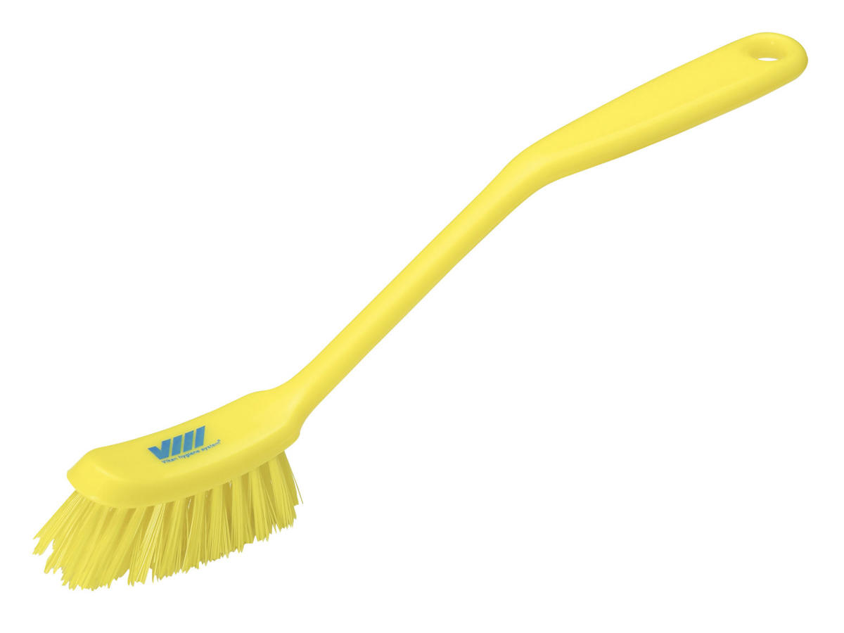 Opvaskebørste i en professionel model med et lille børstehoved, der er velegnet til opvask og rengøring af maskiner samt udstyr. Vinklen på skaftet og grebet gør rengøringen enklere og mere effektivt samtidigt med at man opnår en ergonomisk arbejdsstilling i håndleddet.