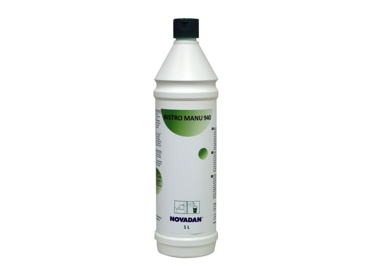 Bistro Manu 940 er et neutralt og svanemærket opvaskemiddel som anvendes til manuel opvask af porcelæn - glas - bestik - gryder m.m. Bistro Manu 940 kan også anvendes til rengøring af malede overfladere. Bistro Manu 740 er meget mild mod hænderne. Bistro Manu 940 efterlader en strålende ren og blank overflade.