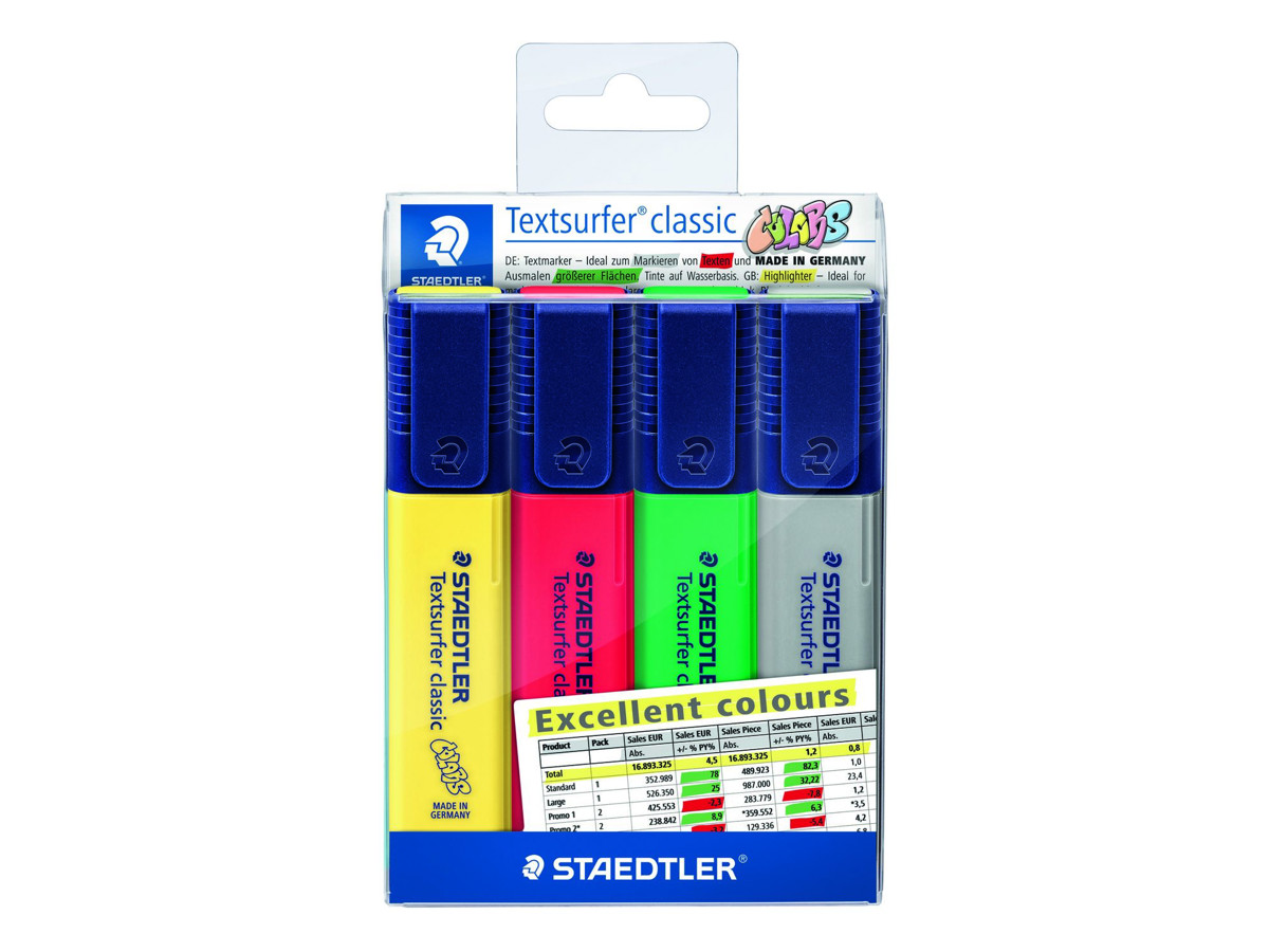 Textsurfer overstregningspen leveres i fire klassiske Excel-farver, som hjælper med at holde dine noter organiserede og farverige. Med disse overstregningspenne fra STAEDTLER, kan både kontorarbejdere og studerende forvente en overlegen skriveoplevelse.