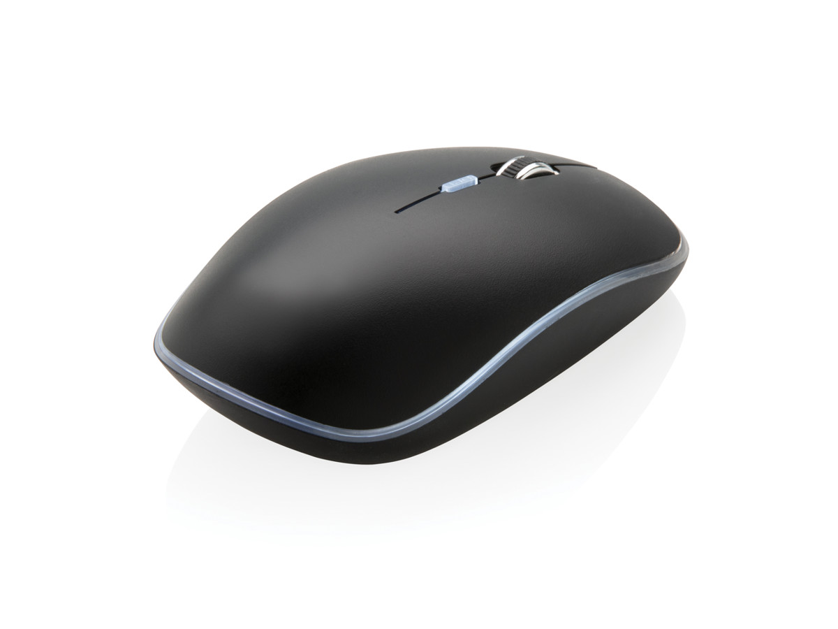 Komfortable genopladelig trådløs mus, med mulighed for at gravere dit logo. Logo vil lyse op så der er ekstra effekt /fokus på dit brand. Musen har et genopladeligt 300 mAh litium polymer batteri og kan fuldt genoplades på 3 timer. Forbindelses hastighed på 125HZ via den medfølgende USB donlge. Højre/Venstre knap samt Schroll funktionshjul. Du kan nemt justere følsomheden af musen til din personlige præference. Kompatibel med Windows og MAC operativsystemer.