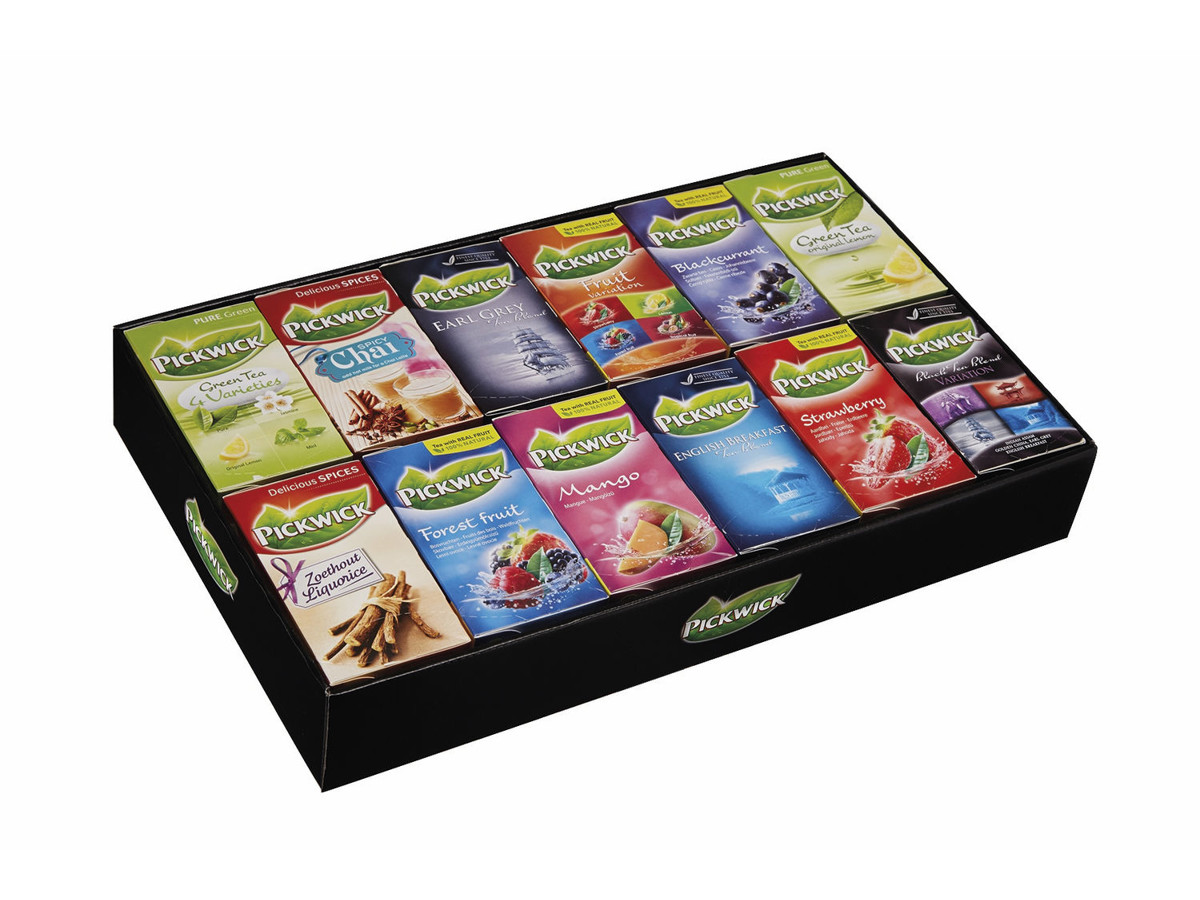 Praktisk borddisplay med Pickwicks 12 mest populære brevte varianter: