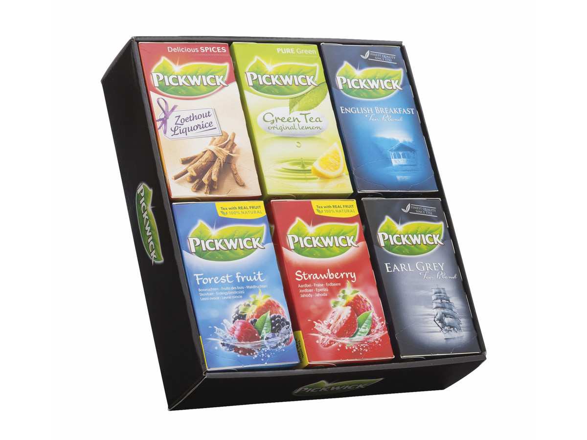Praktisk borddisplay med Pickwicks 6 mest populære brevte varianter: