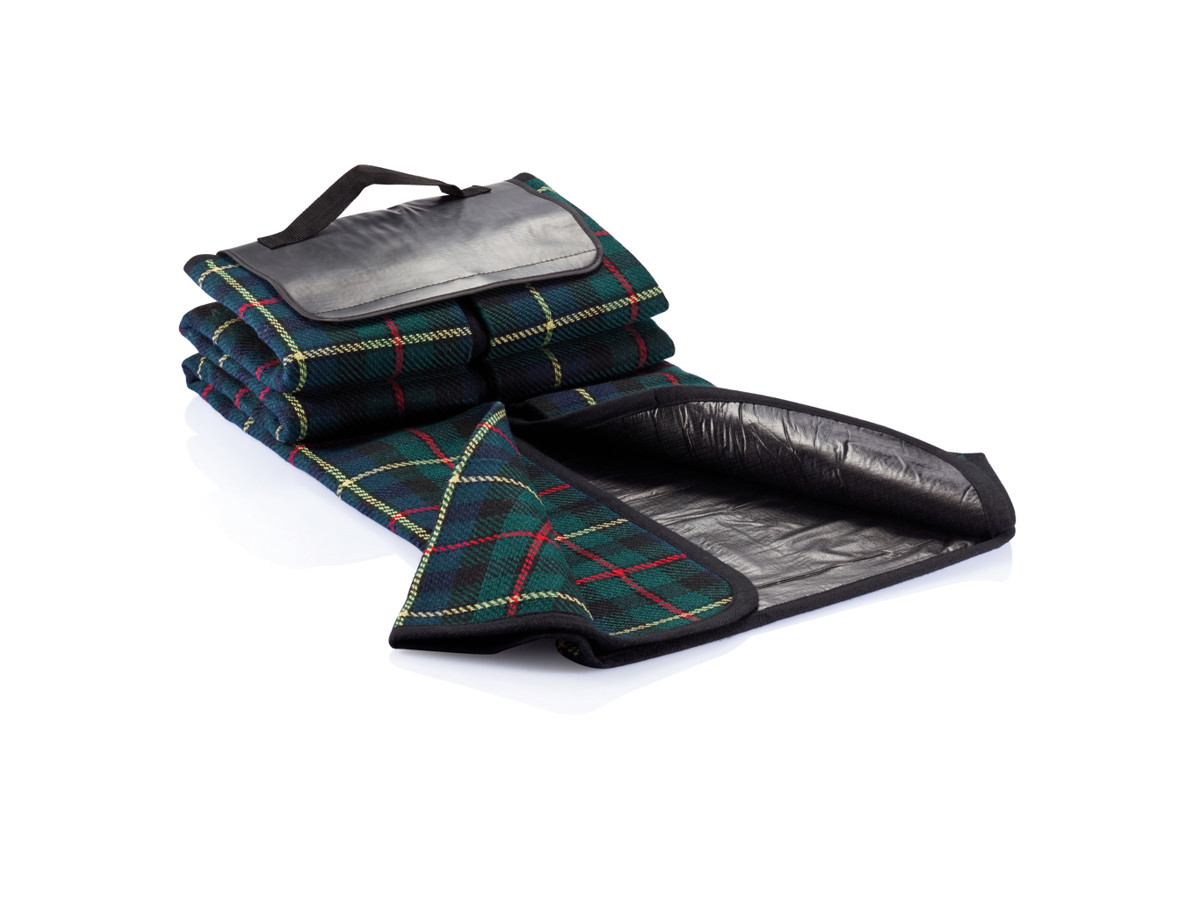 Traditionelt tæppe i størrelse 130x145cm med ternet mønster, hvor forsiden består af vævet akryl 120g/m2 og bagsiden af tæppet er vandtæt PVC 110gsm.