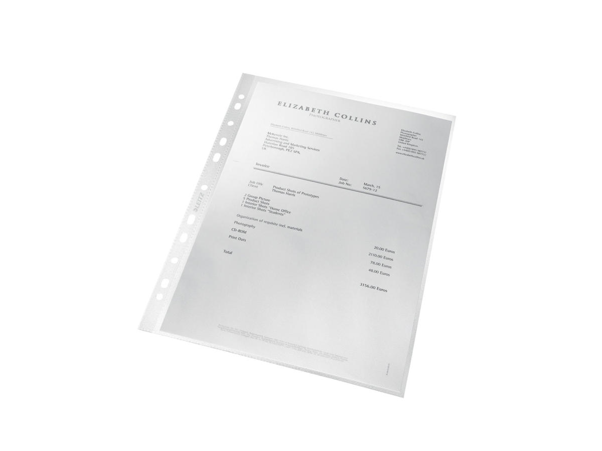 Denne Leitz Recycle, genanvendelig A4-lomme, er udstyret med en 11-hullers universal forhullet forstærket strimmel, der passer til enhver ringbind eller håndtagsbuefil. Skabt med en præget mat overflade og førsteklasses kvalitetsfilm af 100 mikron tykkelse, er dens æstetiske appel ubestridelig.