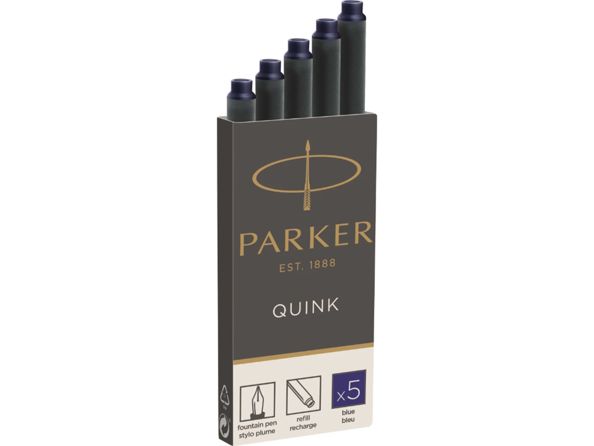 Refill til Parker fyldepen sort blæk Quink. Pakke med 5 stk.