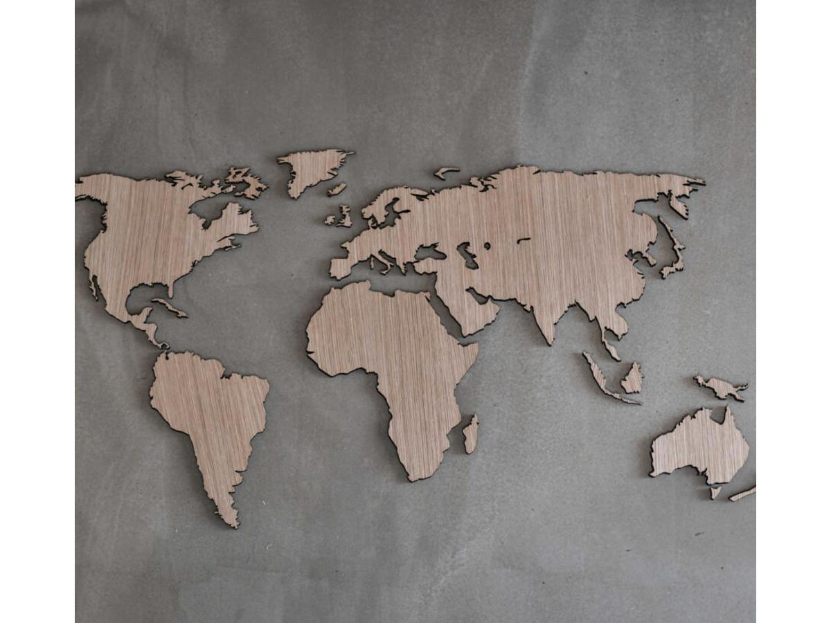 Smukt og tidløst Verdenskort i lys eg, designet til din væg, og udført i bæredygtige materialer i høj kvalitet.