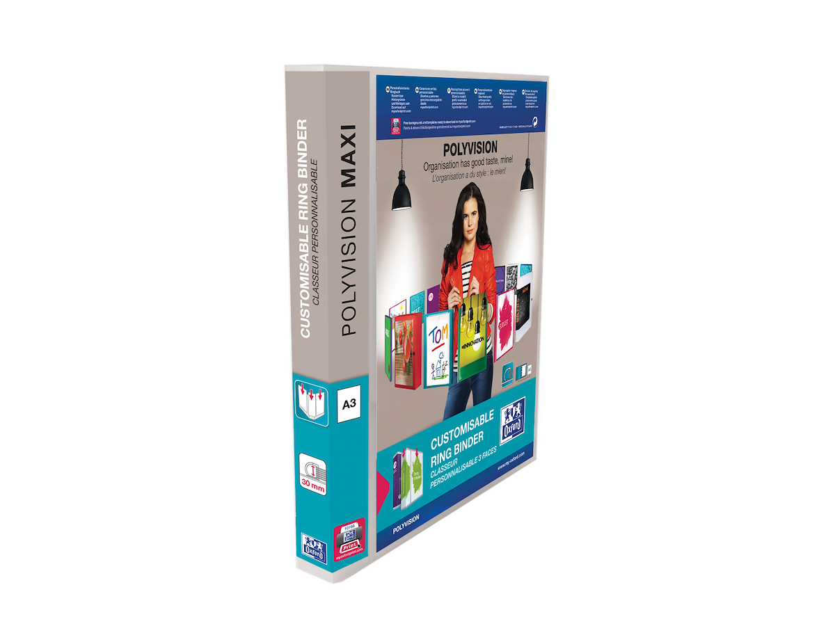 Oxfords Polyvision Maxi ringbind i A3 Maxi-format passer perfekt med registre og faneblade, så plastlommerne og skillebladene ikke stikke ud fra ringbindet. Ringbindet har 3 udvendige indstikslommer på forside, ryg og bagside til at sætte sit personlige præg, hvilket gør dette ringbind ideel som præsentationsbind, salgsmappe, demonstrationsmappe mm. Ringbindet er fremstillet af transparent PP-folie, og har en 4 D-ringmekanisme med en ringdiameter på 30 mm, hvilket betyder at papirerne i ringordneren kommer til at ligge lige over for hinanden, så de er lettere at bladre i.