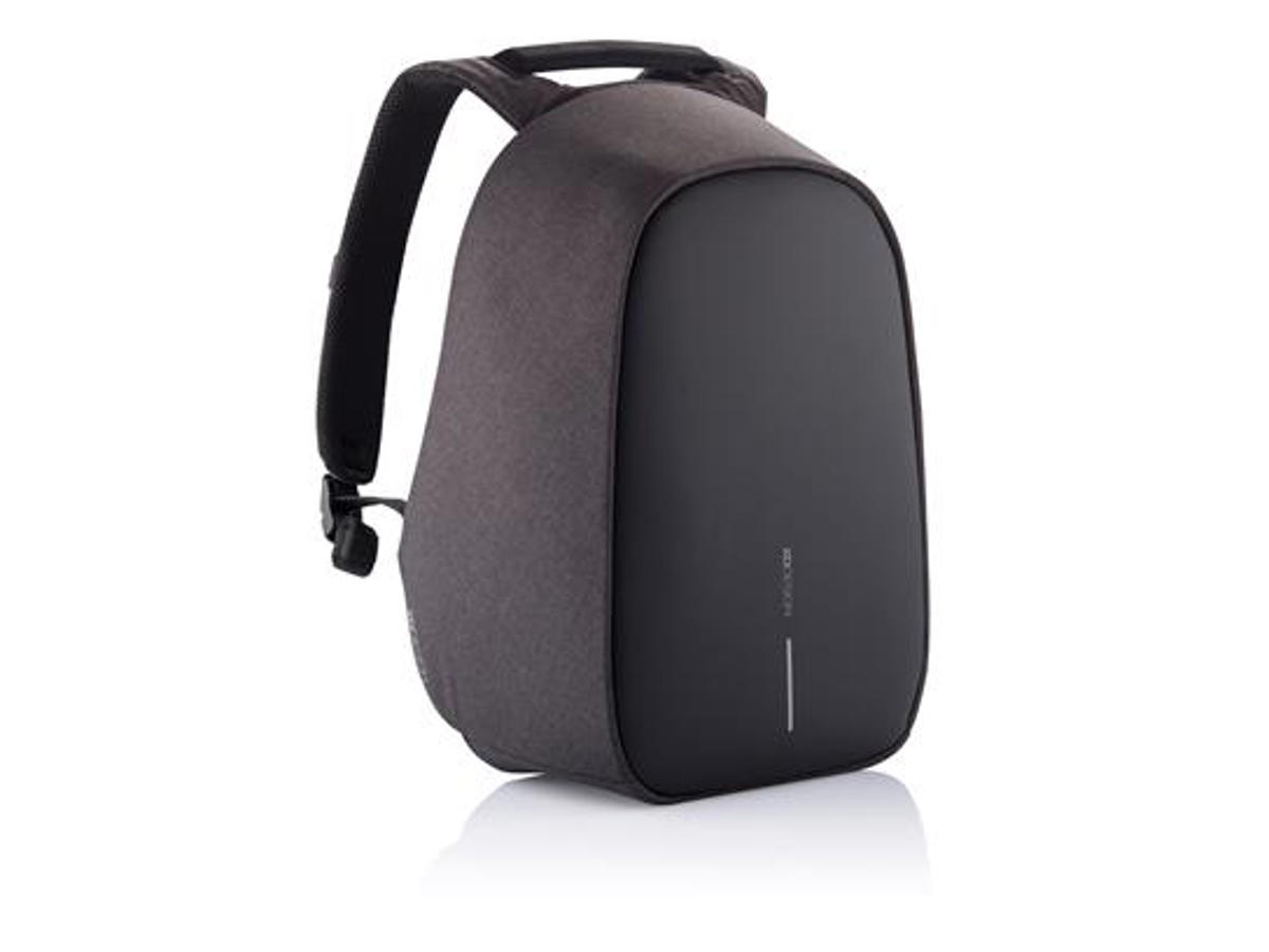 Bobby Hero linjen er vores nye generation af tyverisikre rygsække. Denne model gør dig sikker på farten og har en bekymringsfri indretning. Nøgle facts er bl.a. skæresikkert materiale, skjulte lynlåse og lommer der gør dine ting sikre når du rejser. Bobby er også en behagelig rygsæk at bære. Den har integreret USB ladeport, vandafvisende metervare, refleks striber samt bagagestrop. Indvendig er der plads til en 15,6" laptop, tablet op til 12.9" samt dine ejendele. Rygsækken er lavet af RPET materiale. Registreret design®