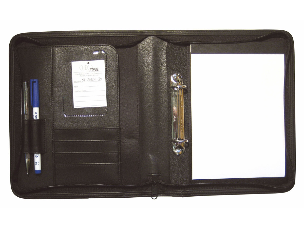 Men Eurostyle går skridtet videre og tænker på dine skrivebehov. Med plads til to penne og kort er denne EUROSTYLE Konferencemappe det perfekte sted at holde alle dine vigtige skrivematerialer og visitkort. Derudover er der inkluderet en A5 papirblok, så du altid er klar til at tage noter.