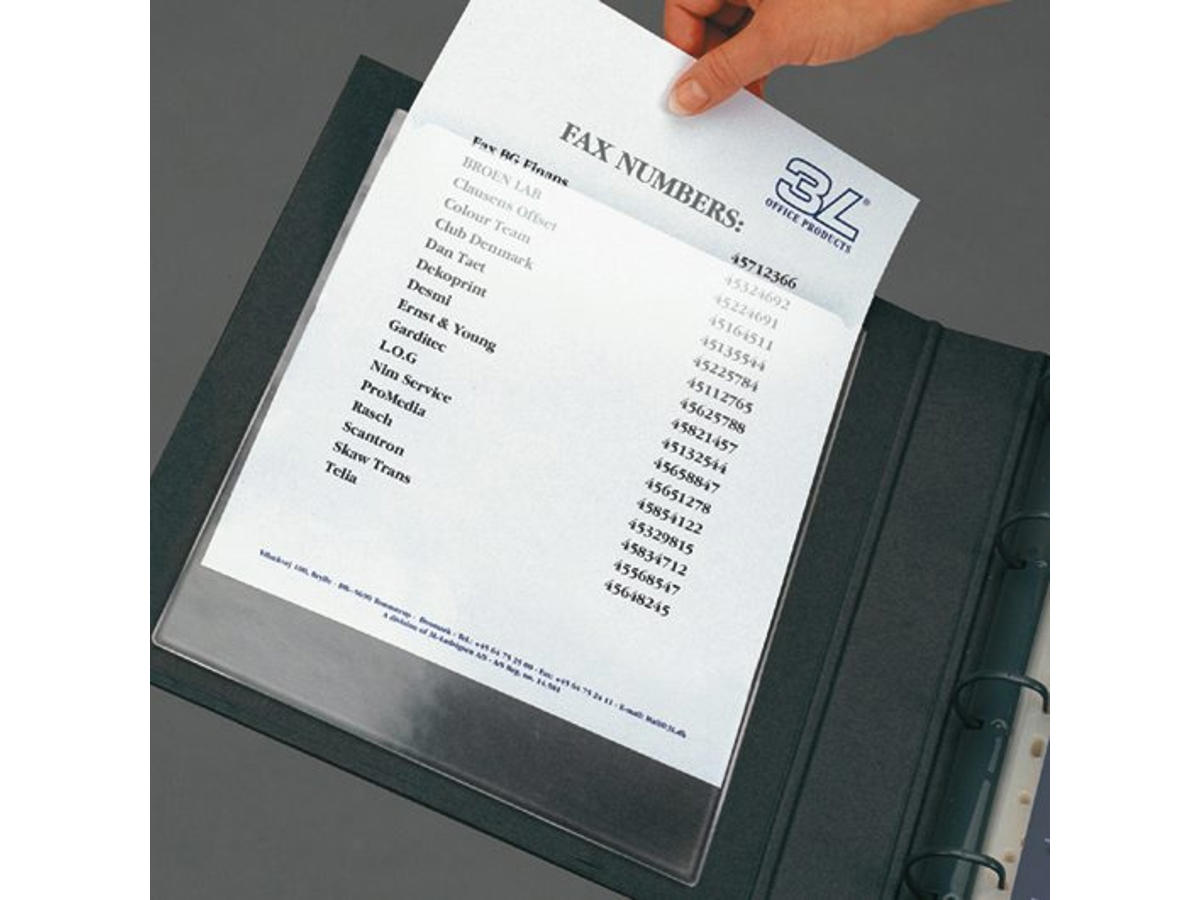 De selvklæbende A-Pockets gør det muligt at klæbe telefonlister, meddelelser, advarsler, manualer m.m. på næsten enhver type overflade og giver god beskyttelse mod støv og snavs. Åben på kort led.