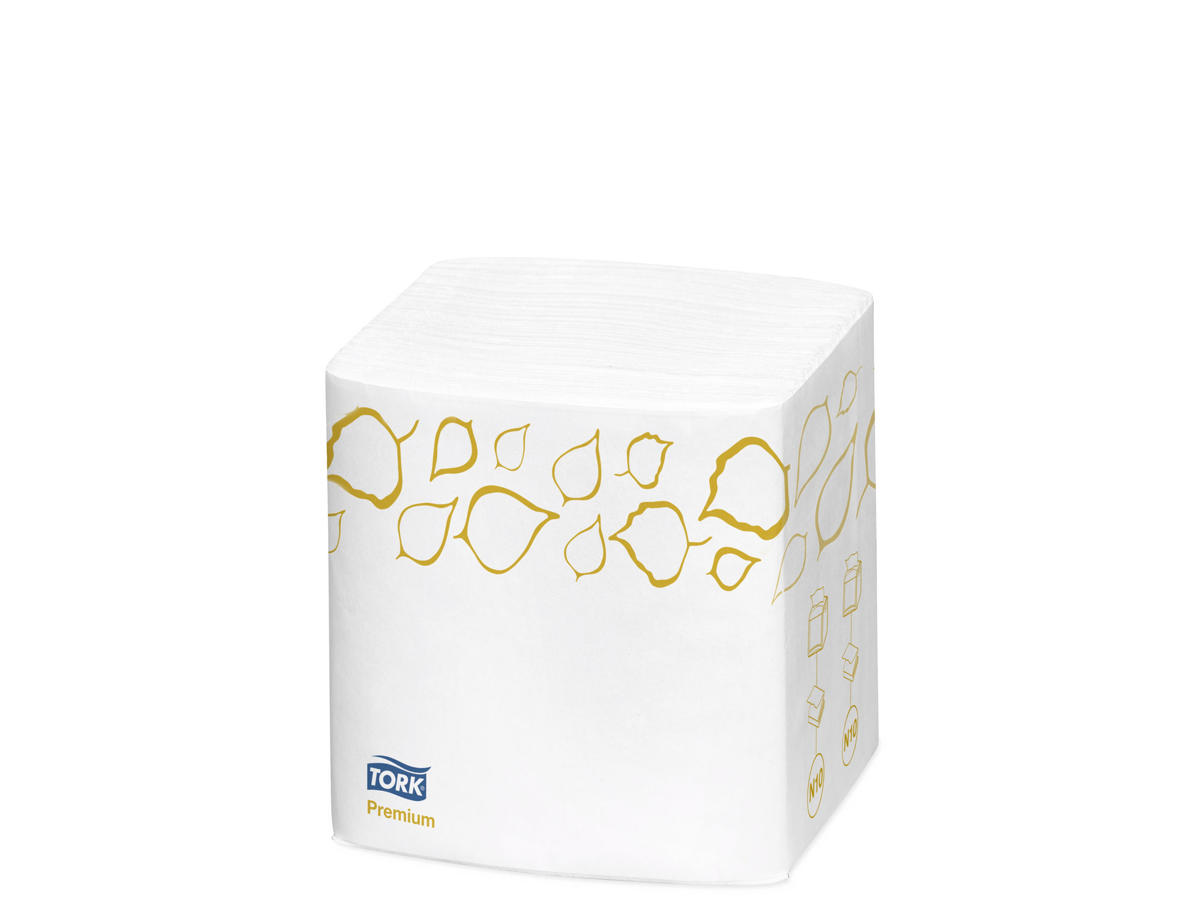 Ekstra blød, tyk og fyldig serviet til de lejligheder, hvor en lille serviet er tilstrækkelig.* Servietterne er dekorerede med et elegant, hvidt blad-motiv.* Perfekt til fastfood restauranter, som har fokus på omkostninger men også ønsker kvalitet.* Hvert bundt ligger hygiejnisk beskyttet i en plastindpakning.* Godkendt til kontakt med fødevarer. EU Miljømærket.* Tork Easy Handling: Nemt at åbne emballagen og nemt at gøre den flad og bortskaffe den.