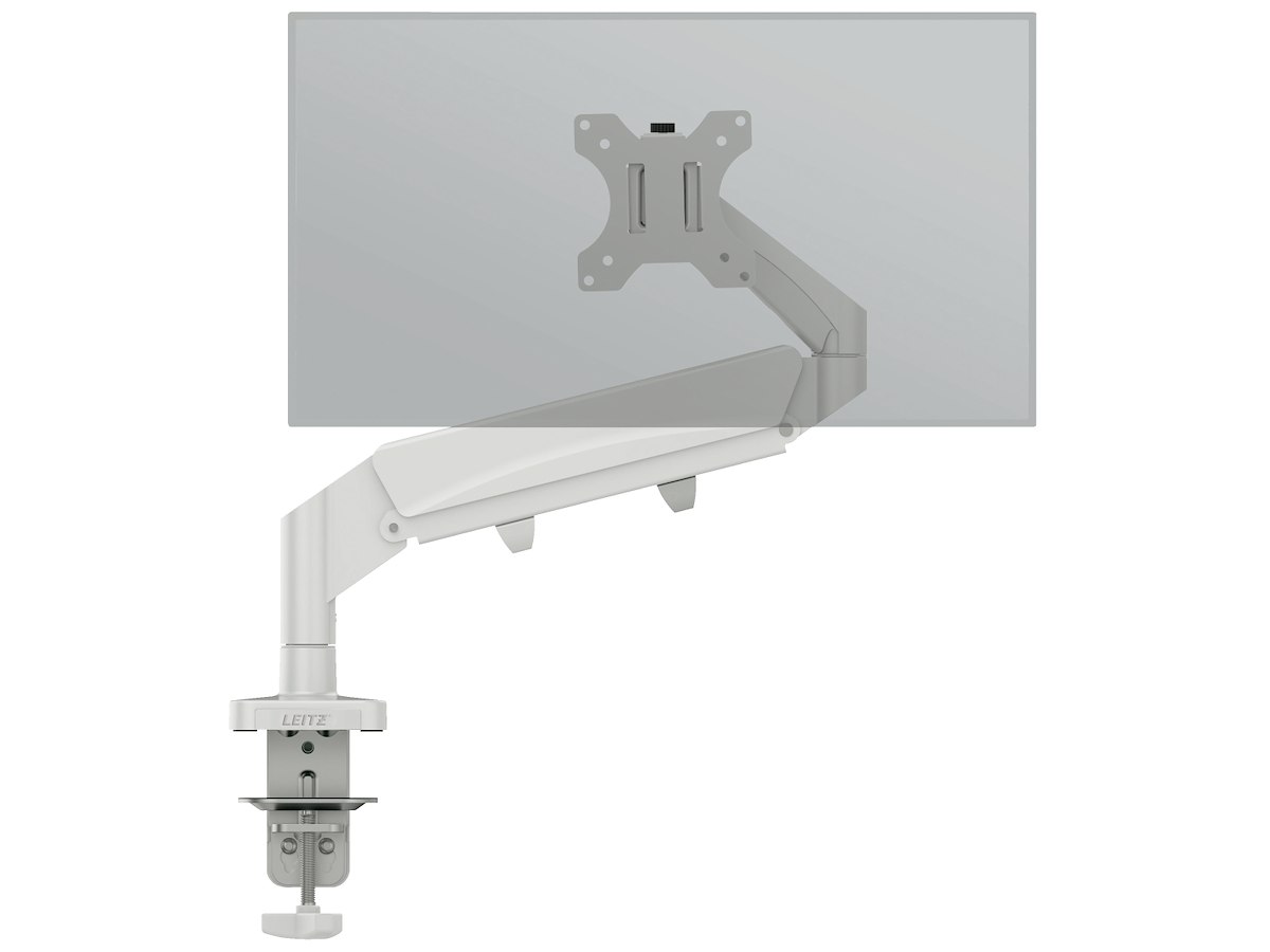 Leitz pladsbesparende single monitor arm har en positiv indvirkning på kropsholdningen, fremmer korrekt øjenjustering og understøtter nakke- og skulderkomfort, når skærmens højde justeres korrekt, og som anbefalet, til den ideelle ergonomiske position. Skærmholderen forbliver stabilt i alle højder og vinkler og kan nemt skiftes mellem liggende og stående tilstand. Designet er ideelt til steder, hvor pladsen er trang, og det frigør værdifuld plads på skrivebordet. Ergonomisk designet til at fremme velvære og øge produktiviteten.