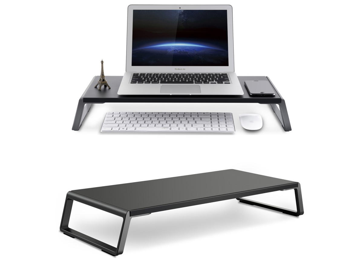 Det er vigtigt at have de rette ergonomiske møbler så du ikke får ondt i arme, skuldre, øjne og andre led. Dette opnås bedst med kvalitets udstyr som optimere din synsvinkel og arbejdsstilling. Denne flot designede holder kan du benytte til både din skærm eller laptop og vil løfte skærmen op så du får en mere ideel synsvinkel og kan slappe af i øjnene. Den er fremstillet af højkvalitets MDF & aluminiums materialer og fremstår i et enkelt og eksklusivt design der vil passe ind i de fleste rum. Du kan også benytte den som møbel til f.eks din printer og bruge pladsen under til opbevaring af papir og ved brug til skærm eller laptop er pladsen under helt oplagt til at opbevare dit eksterne tastatur.