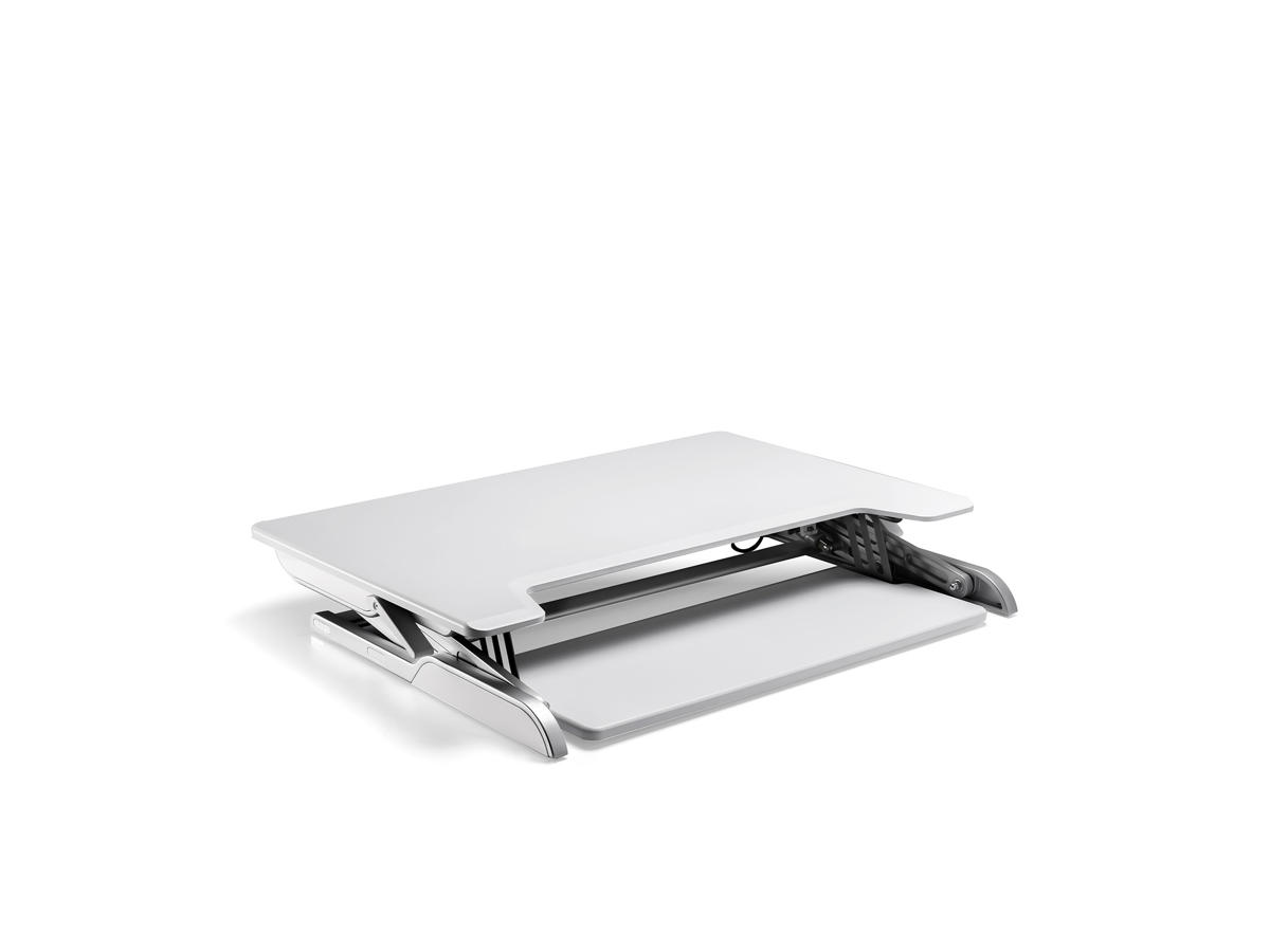 Der er indbygget gasfjeder og den gør det helt vægtløst at indstille til den ønskede postion uden brug af kræfter. I sammenfoldet position fylder den kun 14cm i højden og du kan justere den helt op til 42cm i højden. Du kan benytte den til både, laptop, skærm og andre ting du ønsker og den kan både bruges permanent på dit bord, hvor du arbejder, men kan også med fordel bruges til præsentationer og andre steder, hvor det vil give en fordel at kunne få dine redskaber hævet til den bedste arbejdsstilling.