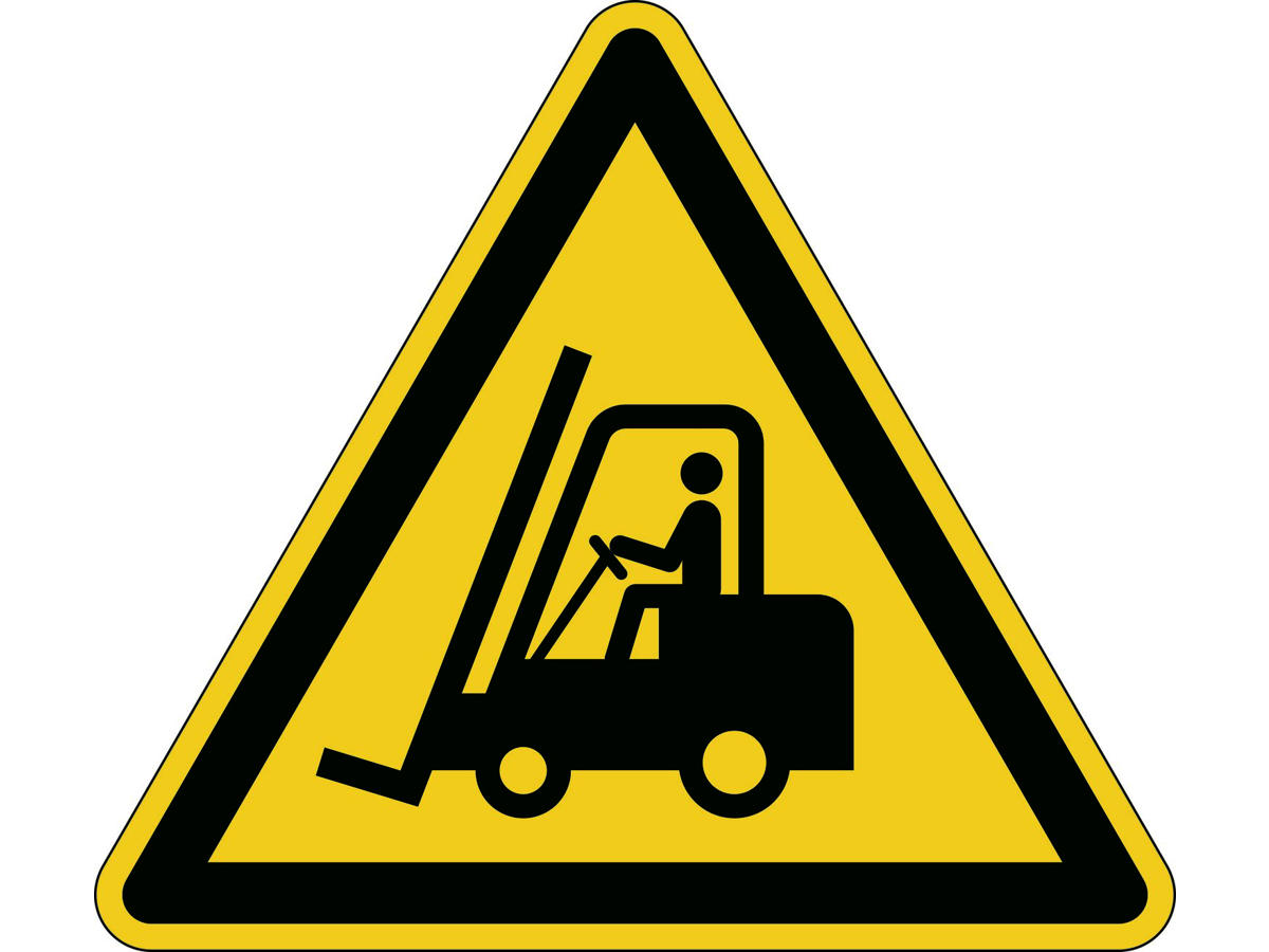 • · Registreret advarselsskilt: ""Warning for truckers"", W014 i henhold til ISO 7010 · Selvklæbende, til indendørs brug fx på lager og i produktionsfaciliteter · I holdbar materiale der tåler slid · I overensstemmelse med ISO 7010 · Anti-slip klasse R9 i henhold til DIN 51130 · Mål: Ø 430 mm, tykkelse 0,4 mm