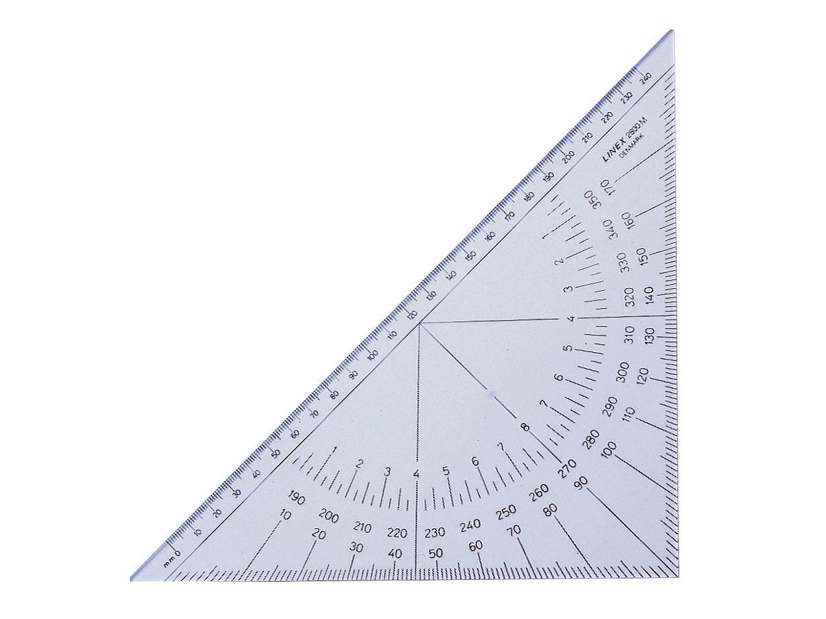 Med lodret kant. Inddelt i mm, grader og streger. Til afsætning af kurs og distance.Materiale: glasklar SAN.