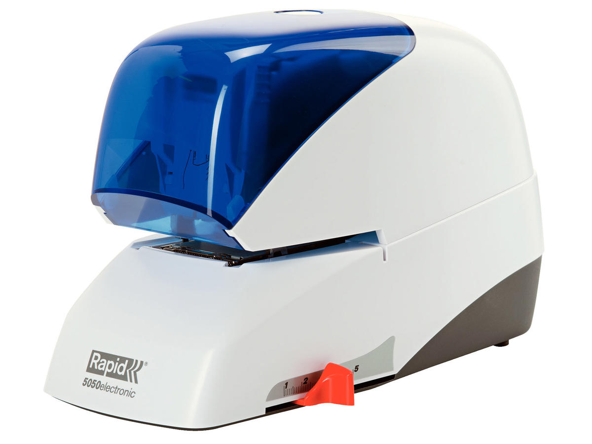 Gør din hæftningsopgave ubesværet med Rapid Supreme R5050e Elektrisk Hæftemaskine. Med sin patenterede kassettehæfteteknologi er det et kraftfuldt værktøj, der kan håndtere op til 50 ark ad gangen.