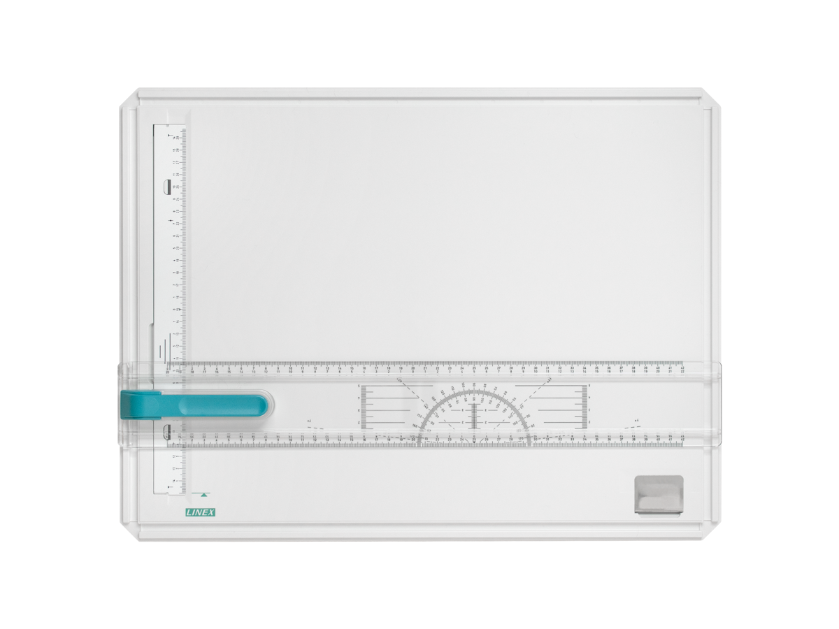 LINEX Professionalisme, præcision og pålidelighed – Linex har siden 1935 lagt ære og erfaring i, at skabe tegne- og måleredskaber i højeste kvalitet. Dansk design, som studerende, kontormedarbejdere og fag-folk kan stole på – lige nøjagtig!. Basistegneplade i A3-format til professionelt brug. Leveres i krympepakning i stofpose. Egenskaber: - Markering af format og papirmargin - Profil for glidende linealbevægelse på alle 4 sider af pladen - Magnetisk klemskinne - Friløbsmekanisme - Hul til kontrol af papirmargen - Slagfast plademateriale - Skridsikring - Ekstra papirklemme - Vinkelmåler med modløbende skala ..
