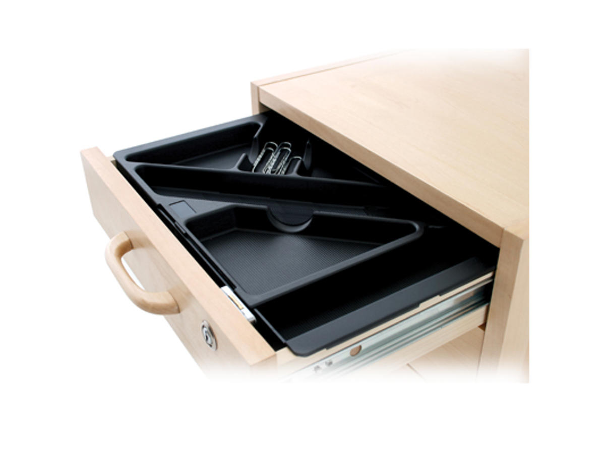 • Pennebakke med forskellige rum, så der er hurtigere overblik i skuffen.