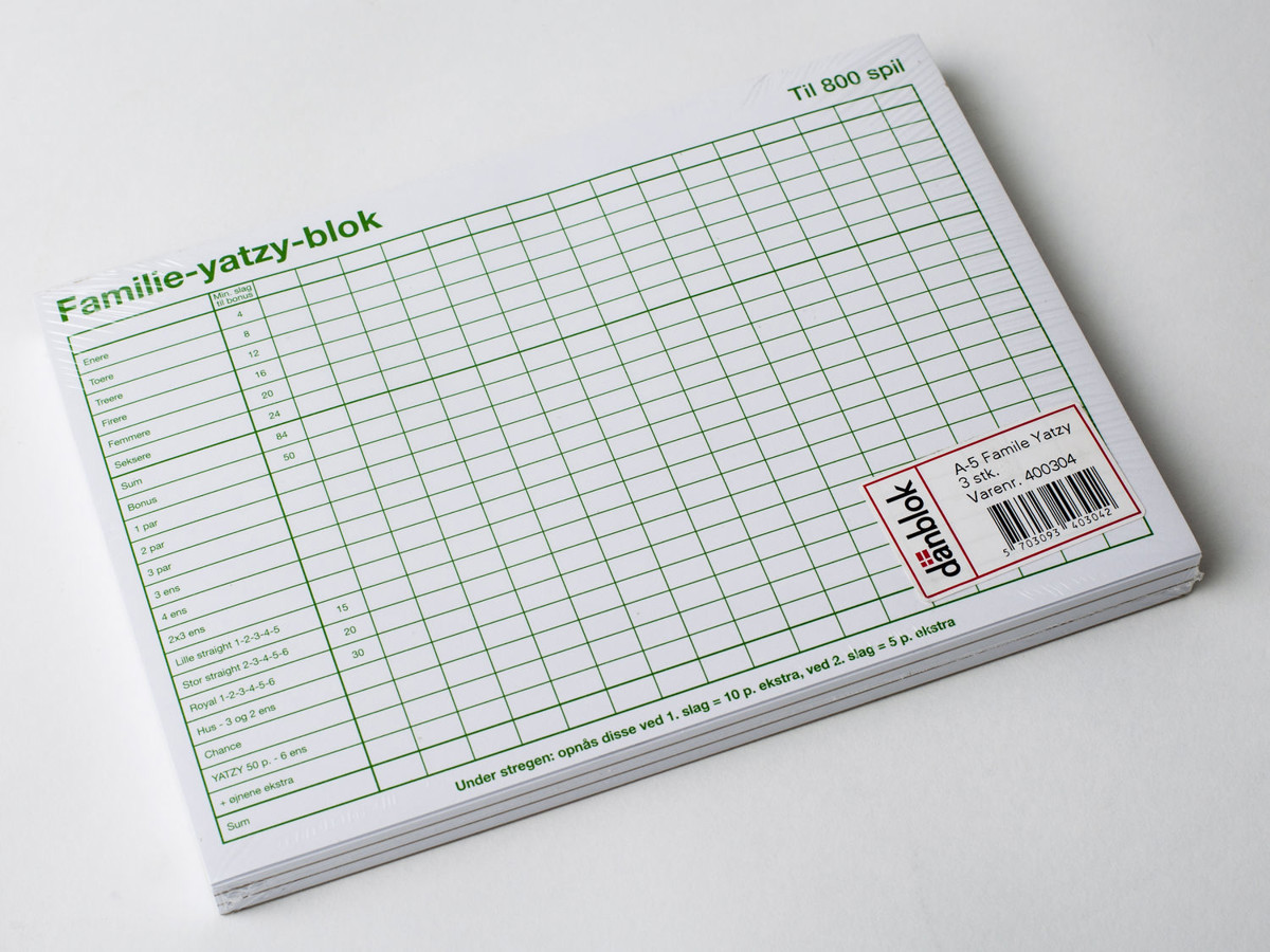Yatzyblok familie A5 3 blokke